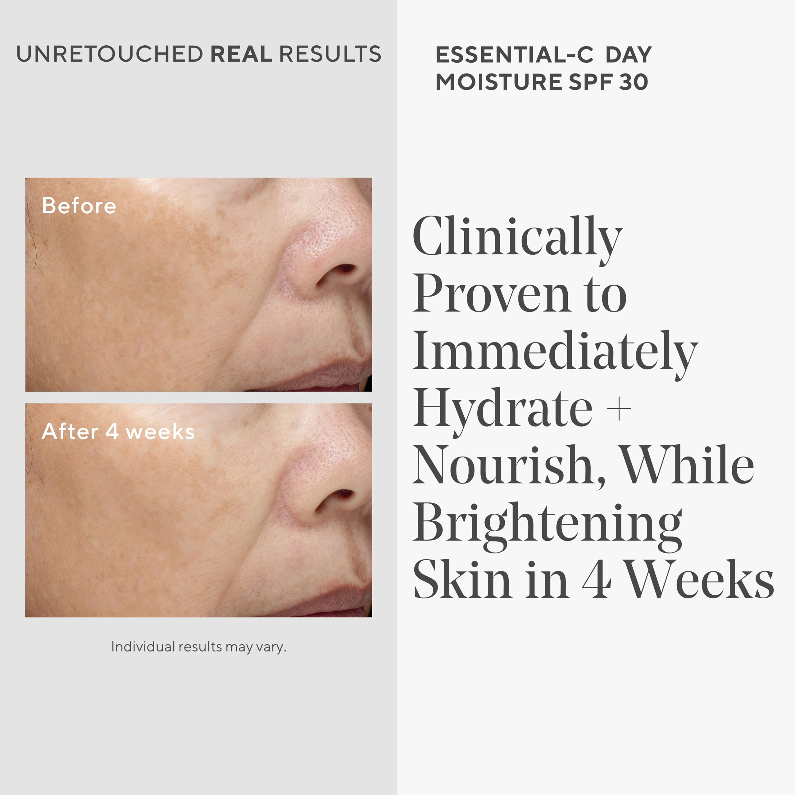 - SPF FACE MOISTURIZER: Essential-C Day Moisture is a hydrating face moisturizer with SPF 30, designed to care for skin by shielding it from damaging UV rays and providing antioxidant protection against environmental aggressors.