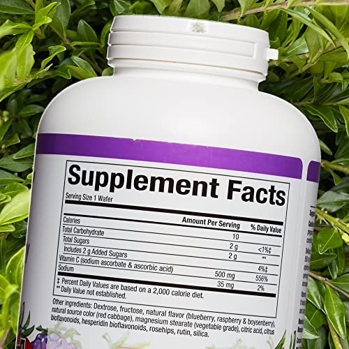 • 500 mg of vitamin C delivered in a fruit-flavored, chewable wafer that?s perfect for children;* Protects against free radical damage and aids healthy cell growth*