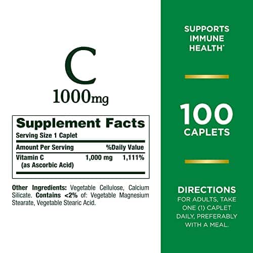 Support your immune system with 1000mg Vitamin C caplets by Nature?s Bounty. (1) This essential nutrient is important for the normal functioning of your white blood cells, which play a vital role in the immune system. (1) Vitamin C is also one of the best antioxidants for fighting free radicals. (1) Free radicals can cause oxidative stress that may lead to premature aging of the cells. Nature?s Bounty Vitamin C combines science, nature and 50 years of expertise and innovation to bring you the easiest way to support immune system health. (1) Simply take one caplet daily, preferably with a meal. Our Vitamin C caplets are non-GMO, gluten free, suitable for vegetarians, and contain no artificial colors or sweeteners. Size: 100 count.