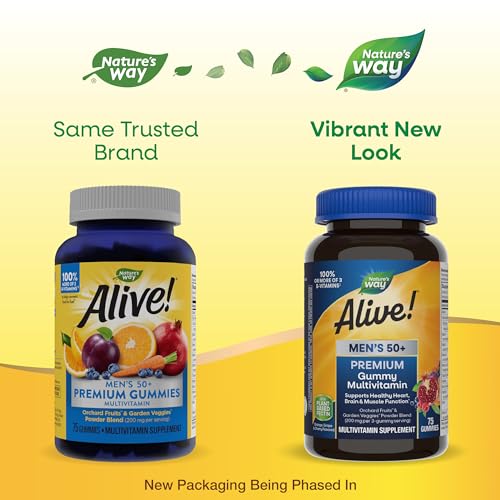 - Nature’s Way Alive! Men’s 50+ Premium Gummy Multivitamin supports healthy heart, brain, muscle function, immune health and more.*
