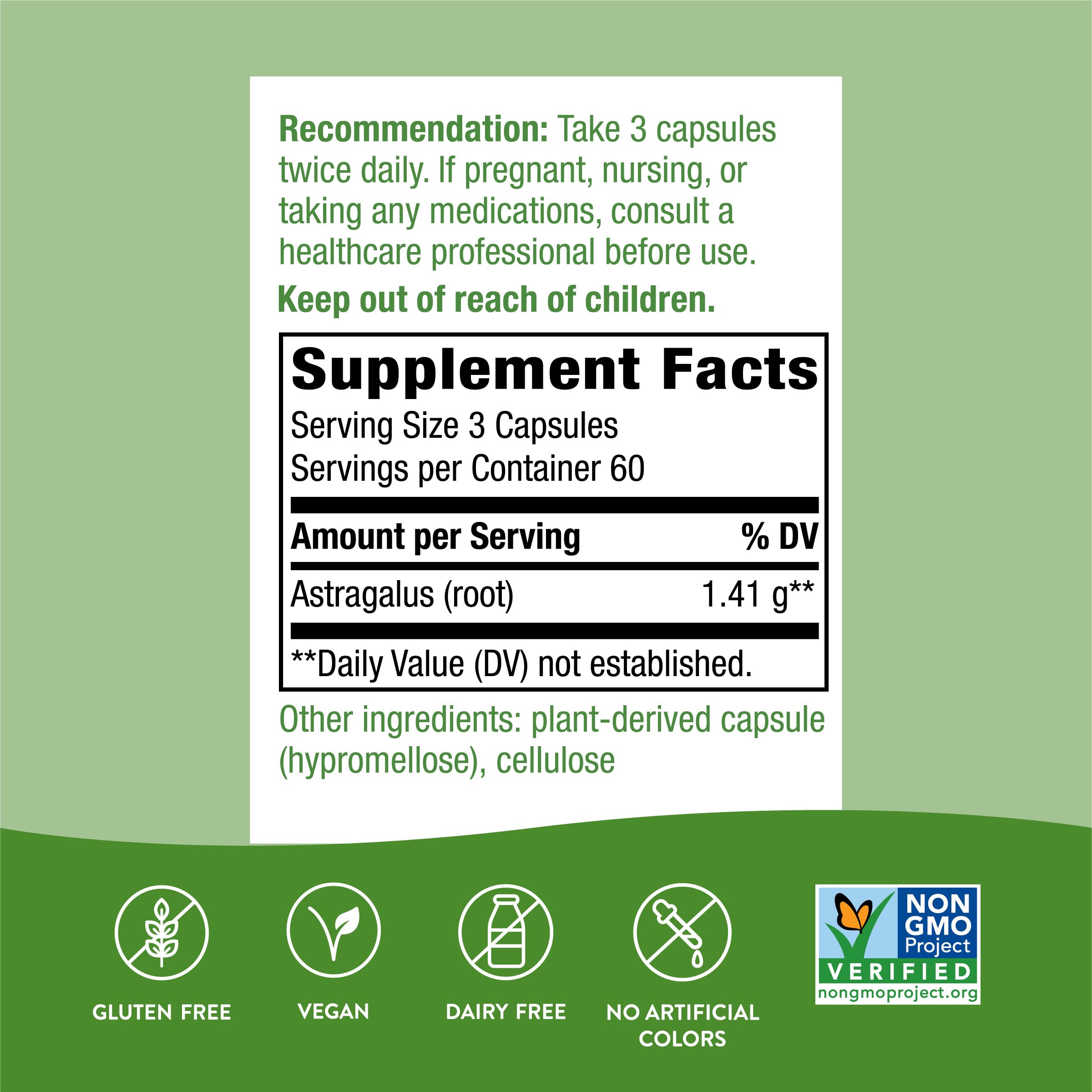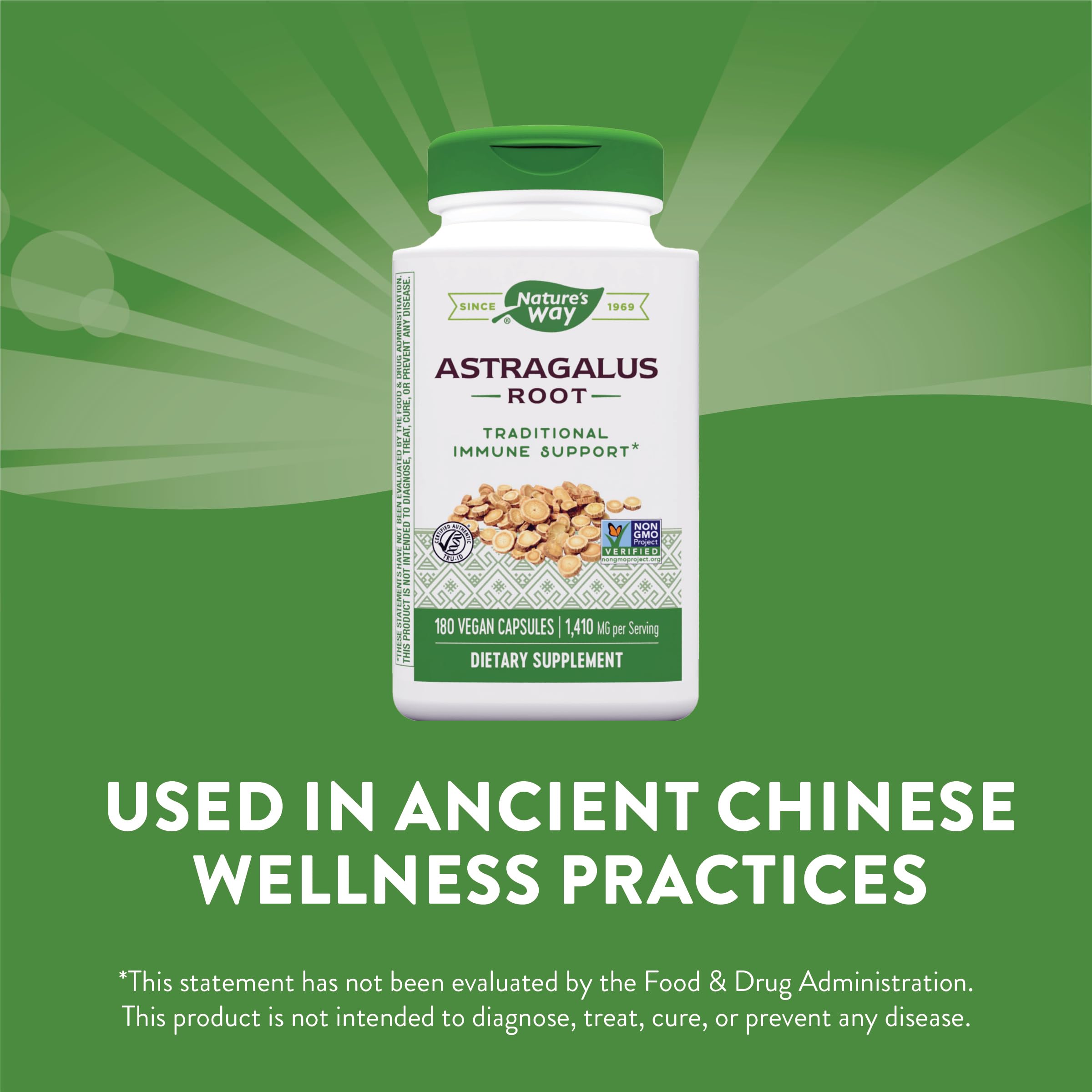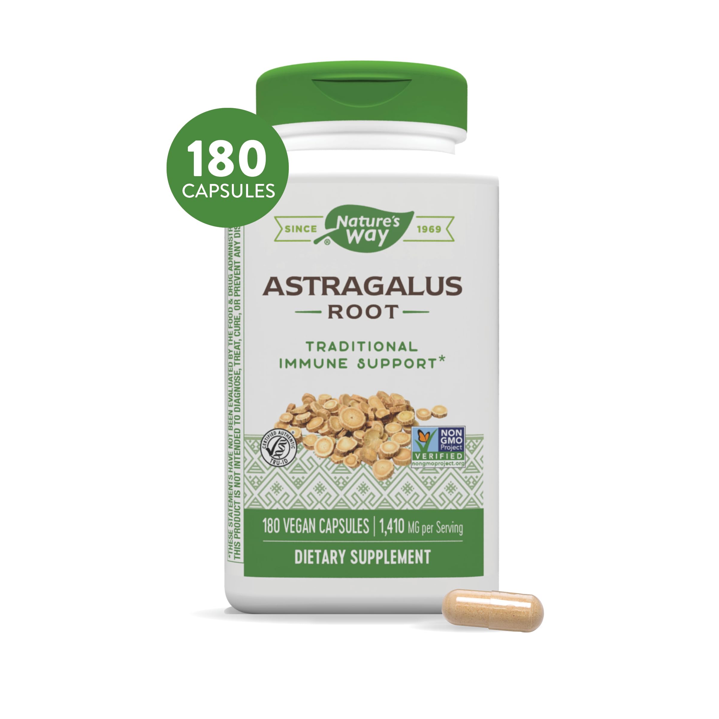 - Each bottle contains 180 vegan capsules of Nature’s Way Astragalus Root, a traditional immune support supplement*