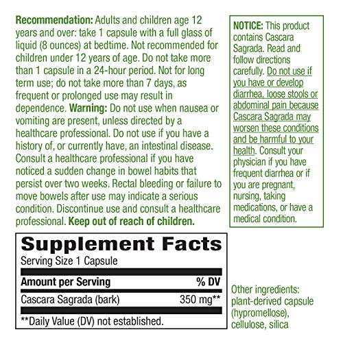The cascara sagrada bark has been used for hundreds of years for various purposes, including as for occasional constipation relief.* Its also known as sacred bark and chittem bark. Natures Way Cascara Sagrada is a vegan formula that contains 270 mg per serving to support digestive function.**This statement has not been evaluated by the Food and Drug Administration. This product is not intended to diagnose, treat, cure, or prevent any disease.