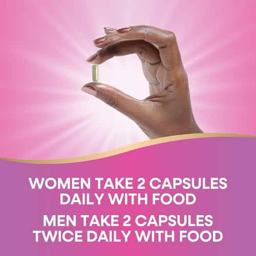 - Women take 2 capsules daily with food. Men take 2 capsules twice daily with food.