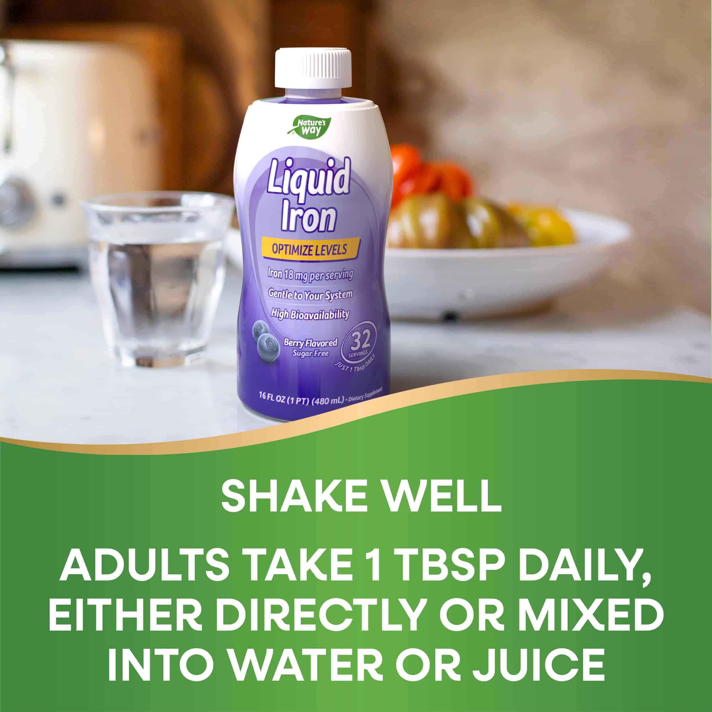 Liquid Iron helps to optimize iron levels needed to restore the body’s energy reserves and reduce signs of occasional fatigue.* Each convenient 1/2 oz serving provides 100% of the recommended daily value of iron. A great tasting dietary supplement that provides an easy alternative to hard-to-swallow pills and tablets.*This statement has not been evaluated by the Food and Drug Administration. This product is not intended to diagnose, treat, cure, or prevent any disease.