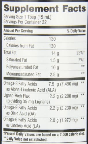 Nature’s Way Organic Flax Oil Super Lignan contains alpha-linolenic acid (ALA) (7.5 g per serving), oleic acid (OA) (2.2 g per serving), linoleic acid (LA) (2 g per serving), and Flax Lignans.* ALA is an important omega-3 essential fatty acid which must be obtained in your diet. This high quality oil is organic, cold-pressed, and hexane free. *See Supplement Facts for total fat and saturated fat content.*This statement has not been evaluated by the Food and Drug Administration. This product is not intended to diagnose, treat, cure, or prevent any disease.