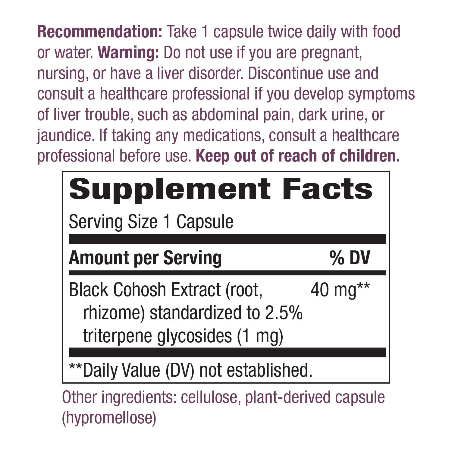 Original price was: ₹1,996.₹1,237Current price is: ₹1,237.Nature’s Way Premium Black Cohosh, Menopause Support for Women*, 40 mg per serving, 120 Ve