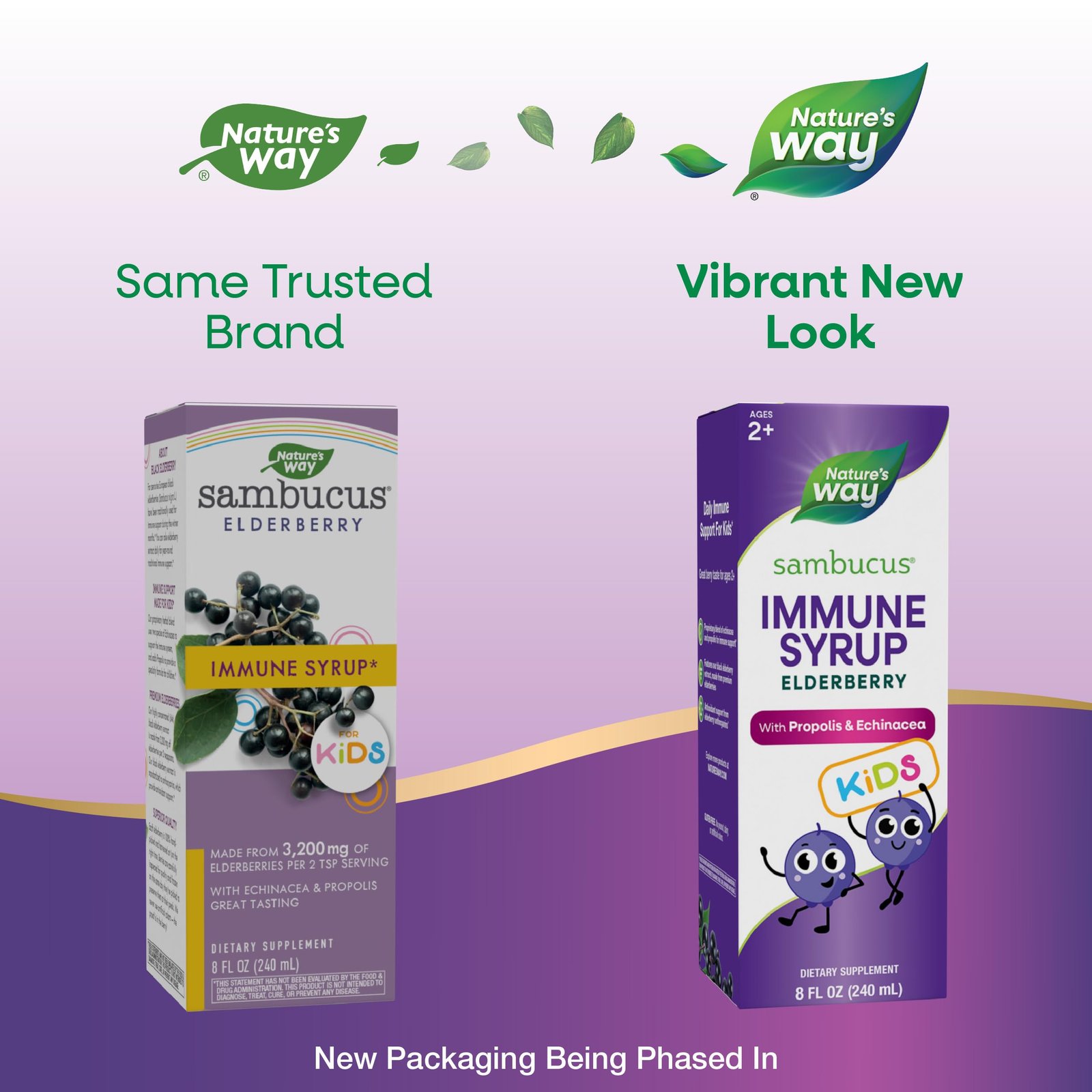 - Nature’s Way Sambucus Immune Syrup for Kids supports immune health with a proprietary blend of two species of echinacea with propolis.*