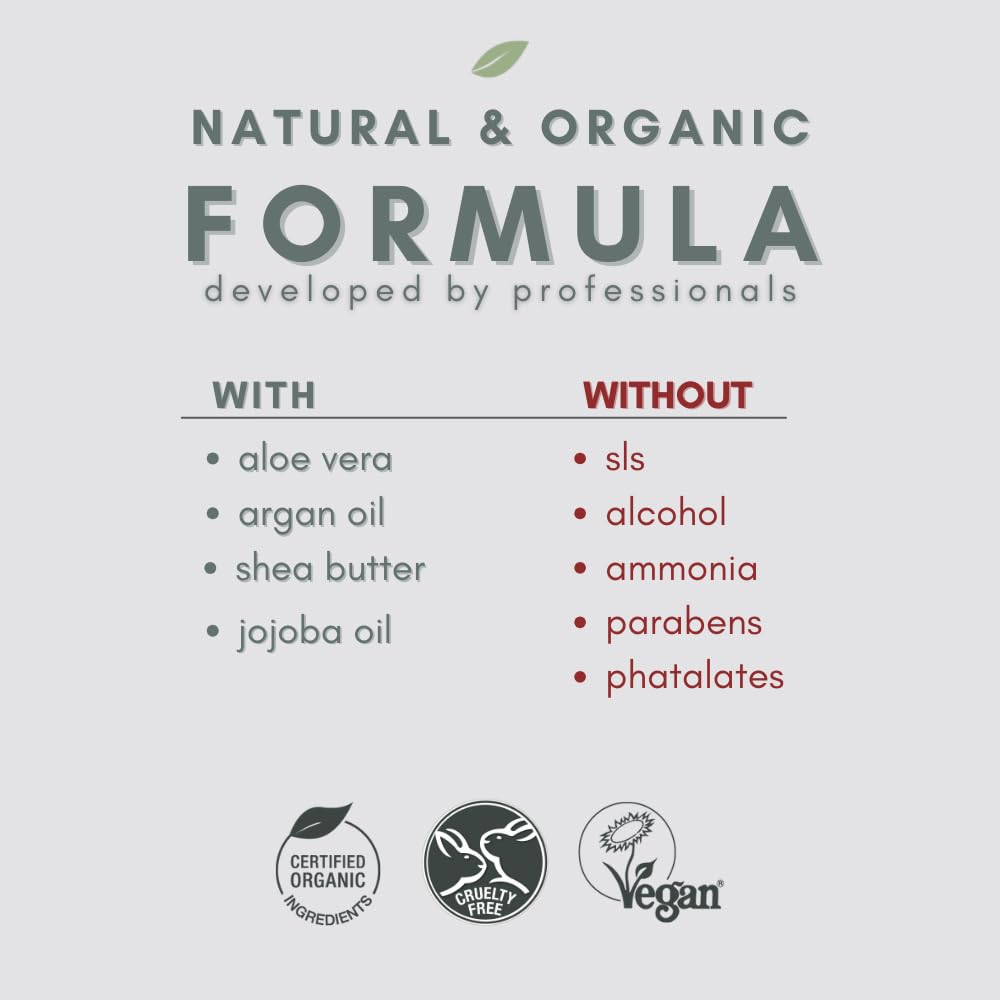 - HAIR COLORS WITH NATURAL INGREDIENTS: Our permanent hair color is infused with the best ingredients for your hair: argan oil, aloe vera, and shea butter, designed to make your hair healthy, shiny, and vibrant. The hair dye is made without the usual harsh chemicals, ensuring it is 100% ammonia-free, alcohol-free, paraben-free, SLS-free, and silicone-free.