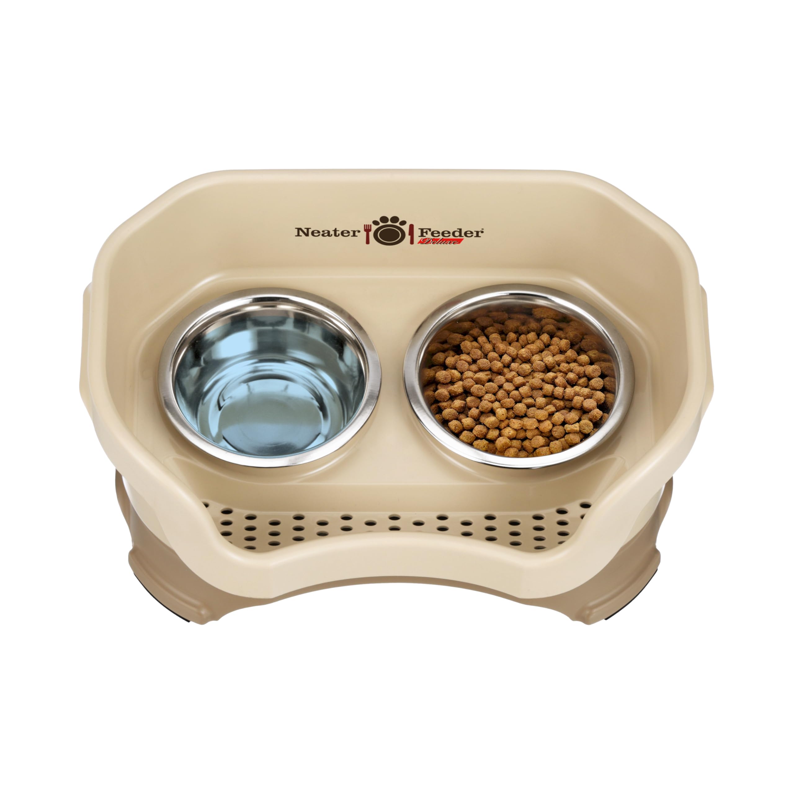 Neater Feeder – Deluxe Model – Mess-Proof Dog Bowls (Small, Cappuccino) – Made in USA – Elevated, No Spill, Non-Tip, Non-Slip, Raised Stainless Steel Food & Water Pet Bowls