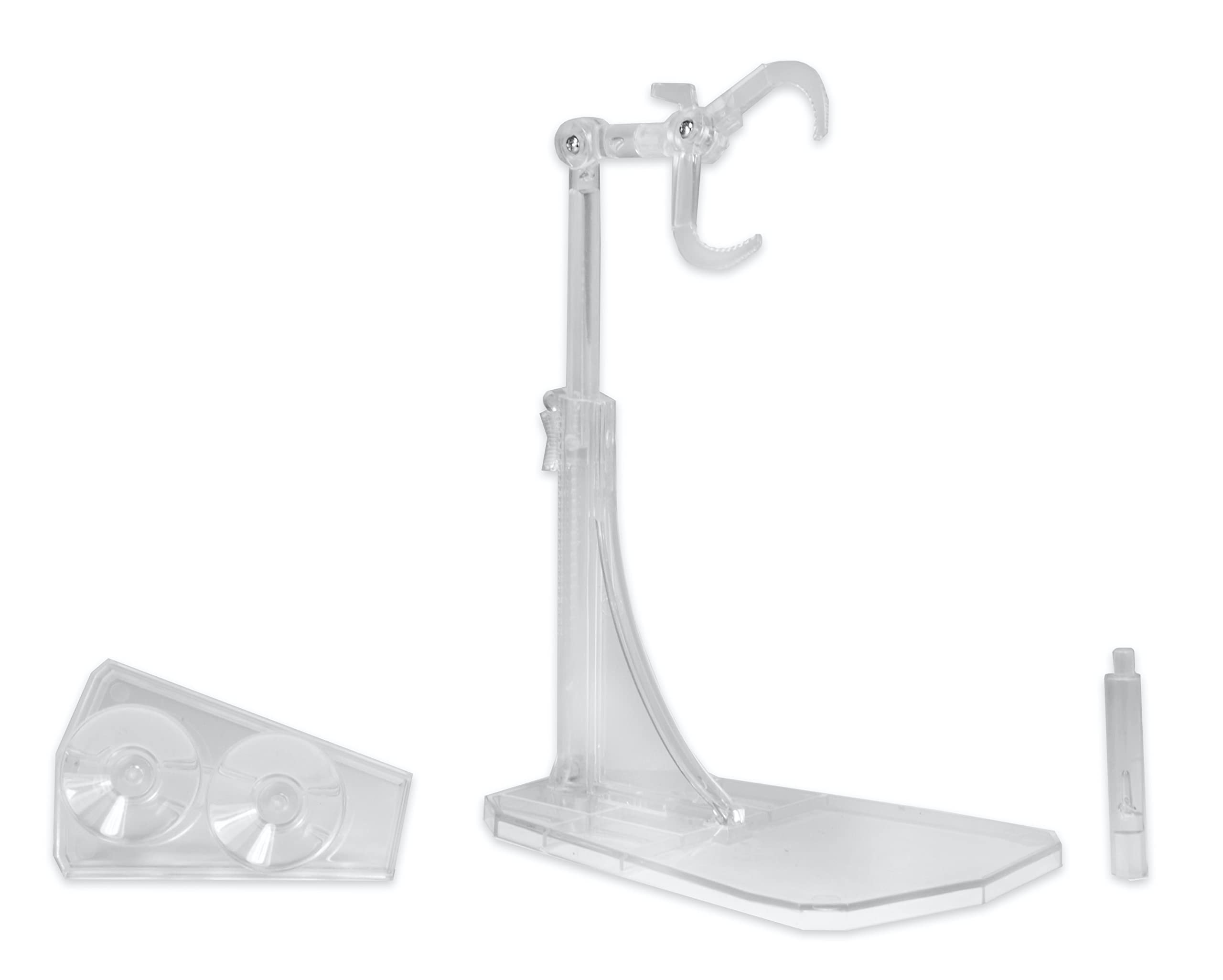 Break free from the shelf! No matter how much articulation a figure has, your posing possibilities have been limited by gravity. until now. NECA’s Dynamic Action Figure Display Stand is an articulated, telescoping stand with two interchangeable bases for display on both horizontal and vertical surfaces. Achieve a full range of dramatic, acrobatic, action-packed poses on flat surfaces, then swap the main base for the suction cup base and do the same on smooth surfaces like windows, walls, doors, mirrors, and more. A segment of the main arm is removable to allow you to control the center of gravity. This game-changing display stand is compatible with most 5″-10″ action figures and has a very clean, clear finish.
