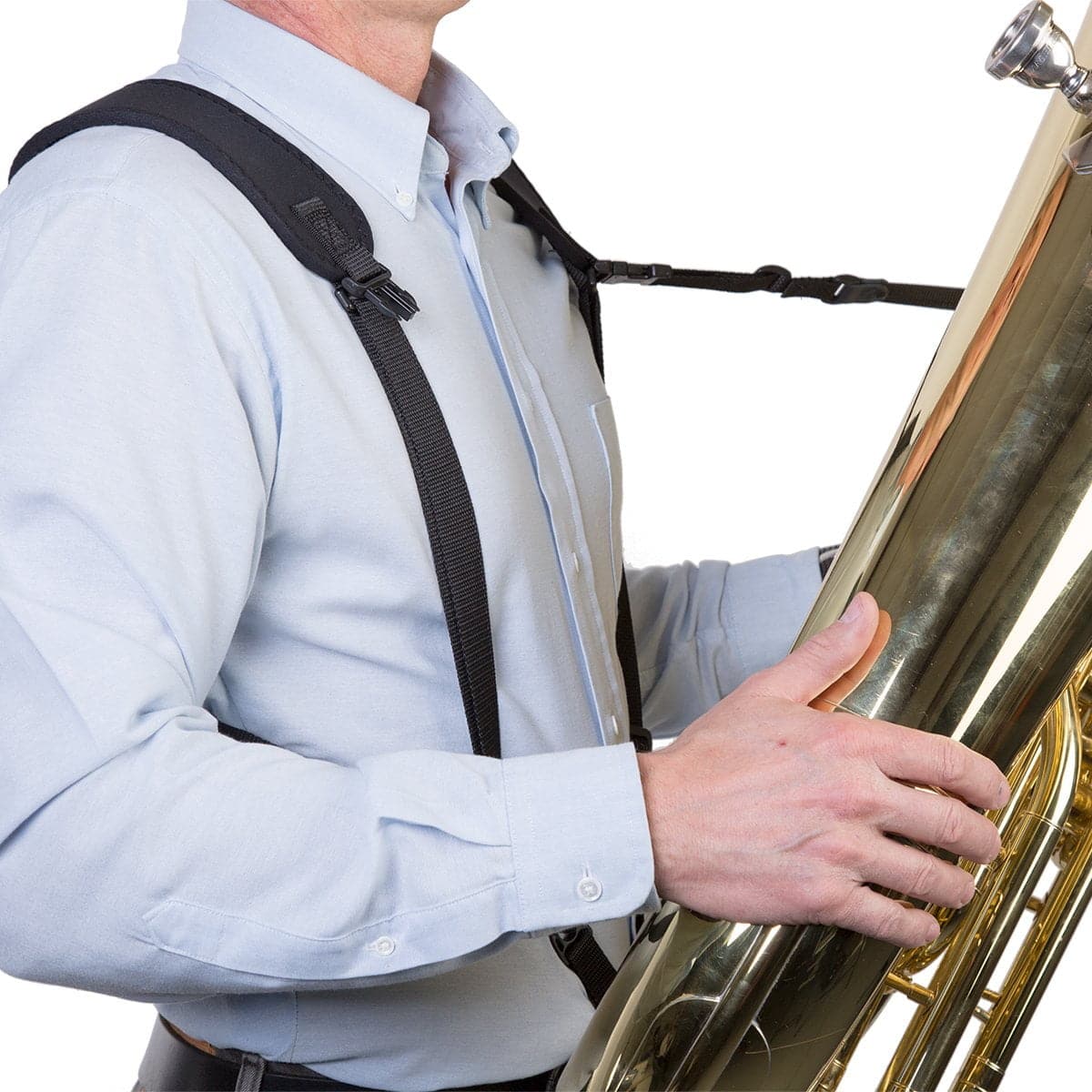 The Tuba Harness conforms to the shape of your body and evenly disperses the weight of the instrument while absorbing the shock of your movements. The neoprene pad forms a comfortable and stable yoke across the top of the back and shoulders. The cushion stays just where you need it most?no matter the amount of moving and grooving you make while playing. The self-adjusting harness freely glides through the hardware located in the back which increases your mobility without sacrificing comfort. The Neotech Tuba Harness is designed comfortably fit both men and women.