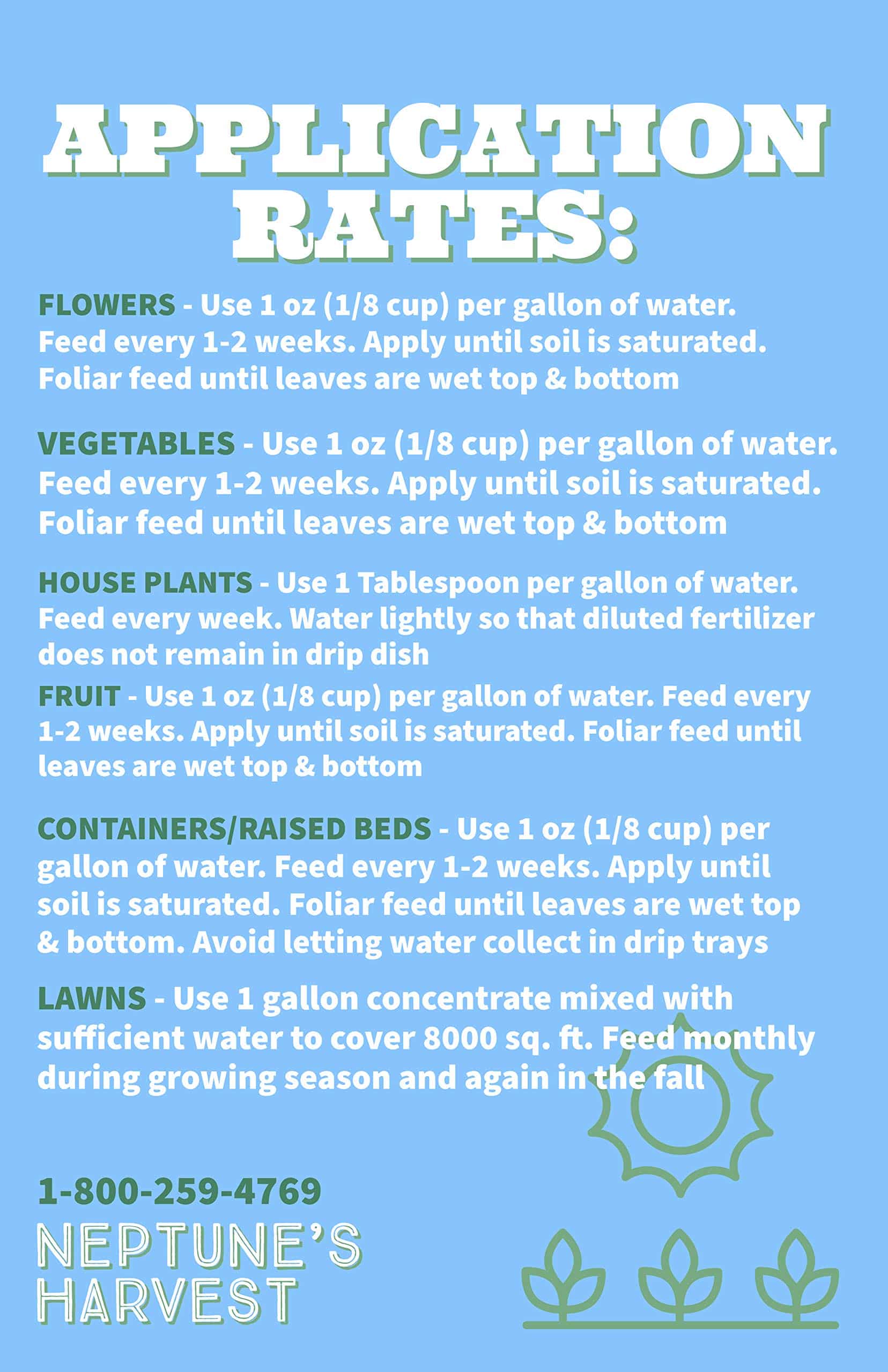 Neptune’s Harvest Organic Fish/Seaweed Blend Fertilizer gives you the best of both products with a perfect blend of fish hydrolysate and seaweed, ensuring a complete fertilization program. Growers using our fish/seaweed blend fertilizer on a regular basis have reported increased marketable yields and improved shelf life on fruits and vegetables. Fish and Seaweed are known to build the natural sugar in plants. Flowers and foliage will be stronger and more colorful. Blooms will be more plentiful, fragrant and longer lasting.