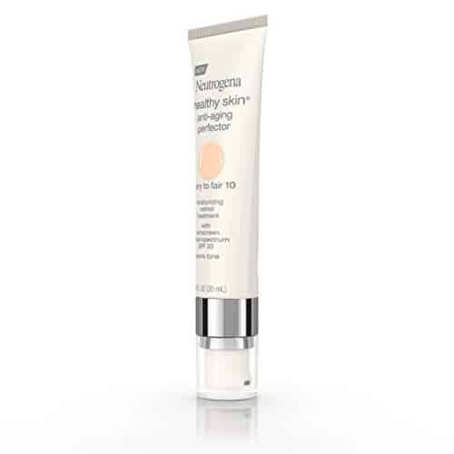 Use Neutrogena Healthy Skin Anti-Aging Perfector Tinted Facial Moisturizer with SPF 20 sunscreen to help reduce the appearance of fine lines. This all-in-one daily moisturizer combines the anti-aging properties of retinol with an SPF 20 moisturizer to offer blendable sheer coverage that helps even tone and smooth skin’s texture while protecting against skin-damaging sunrays. This tinted moisturizer is enriched with clinically proven retinol treatment as well as vitamins and antioxidants to fight the appearance of wrinkles even after you take it off. Neutrogena Healthy Skin Anti-Aging Perfector SPF 20 works across skin tones for a natural, dewy finish with sheer coverage.