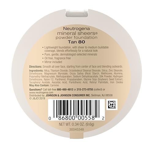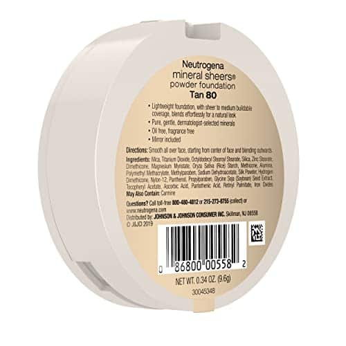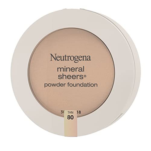 Neutrogena Mineral Sheers Compact Powder Foundation, Lightweight & Oil-Free Mineral Foundation, Fragrance-Free, Tan 80,.34 oz (Pack of 2)
