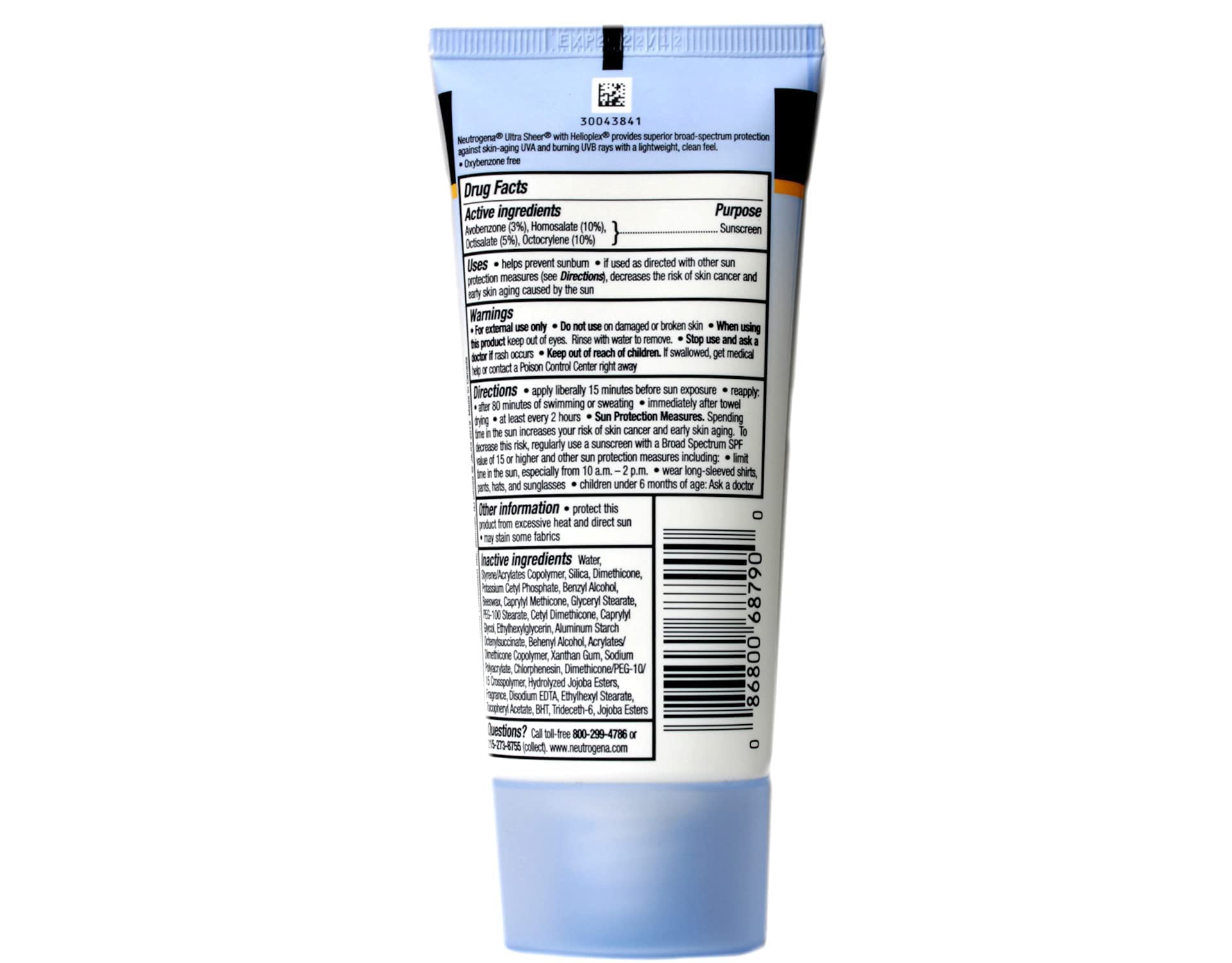 - 3-fluid ounce bottles of Neutrogena Ultra Sheer Dry-Touch Non-Greasy Sunscreen with SPF 55 that helps defend against the signs of sun and decrease the risk of skin cancer when used as directed