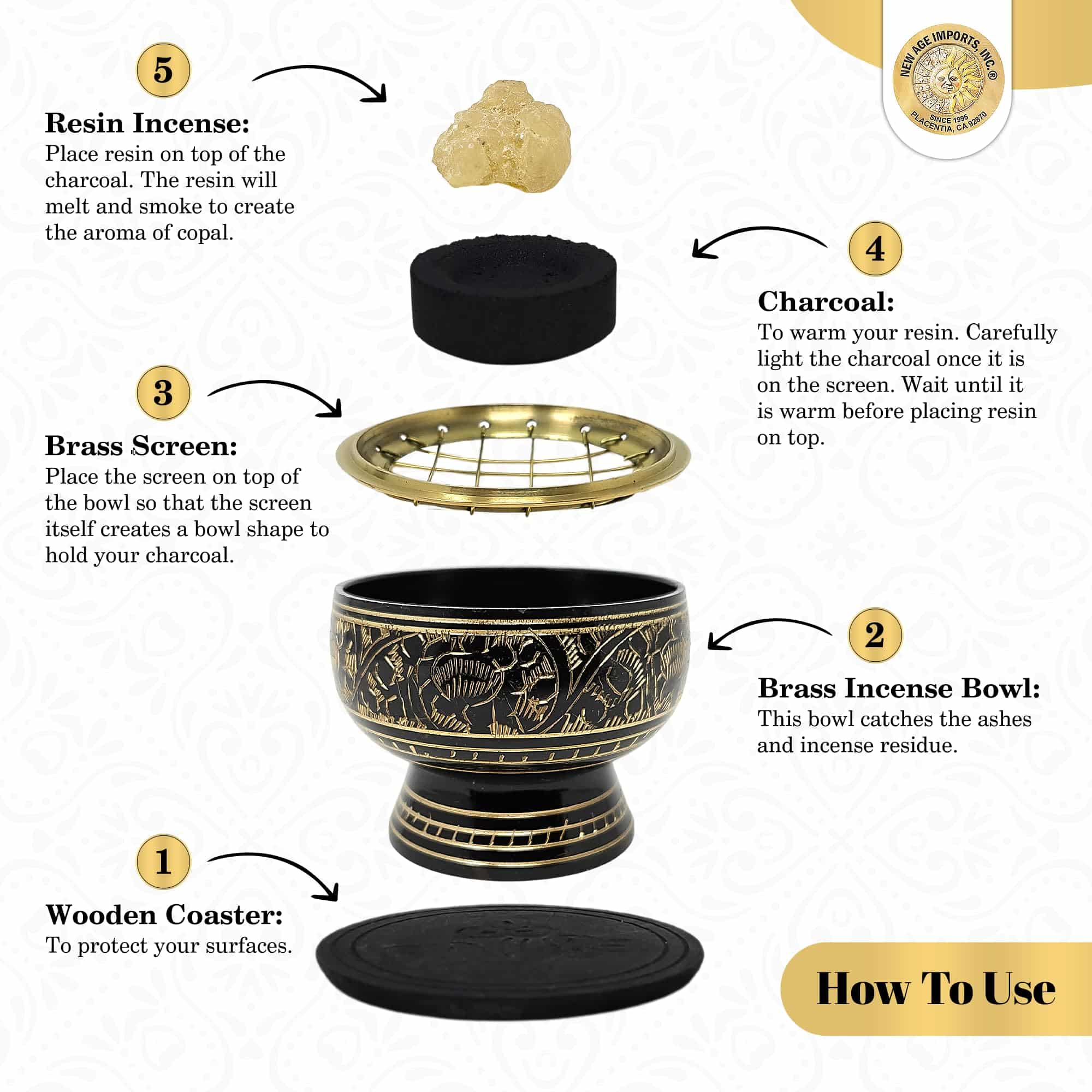 Any questions related to New Age Imports, Inc. India Small Decorated Brass Charcoal Screen Incense Burner with Wood?