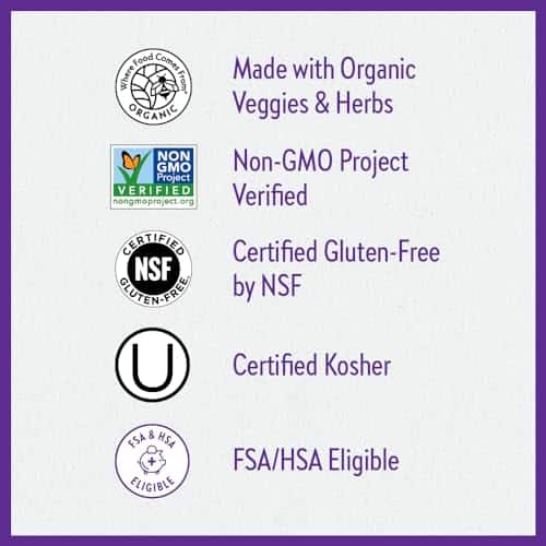 • 1st PRENATAL VITAMIN to be made with Certified Organic Vegetables and Herbs, Non-GMO Project Verified, 100% Vegetarian, Certified Kosher, Certified Gluten-Free by NSF, No Added Sugar, No Synthetic Fillers, No Artificial Colors or Flavors