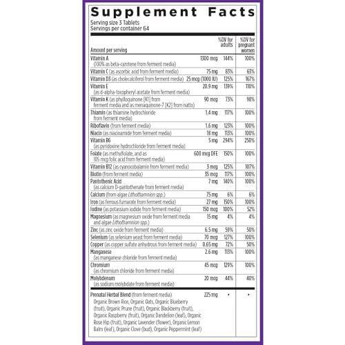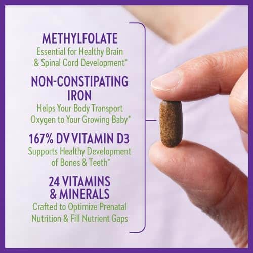 • 3 NUTRIENT-PACKED TABLETS support baby?s healthy development and mom?s healthy pregnancy.*100% Daily Value of Iron, and rich in Folate, B Vitamins, Vitamin D3, Vitamin C, A and Zinc.