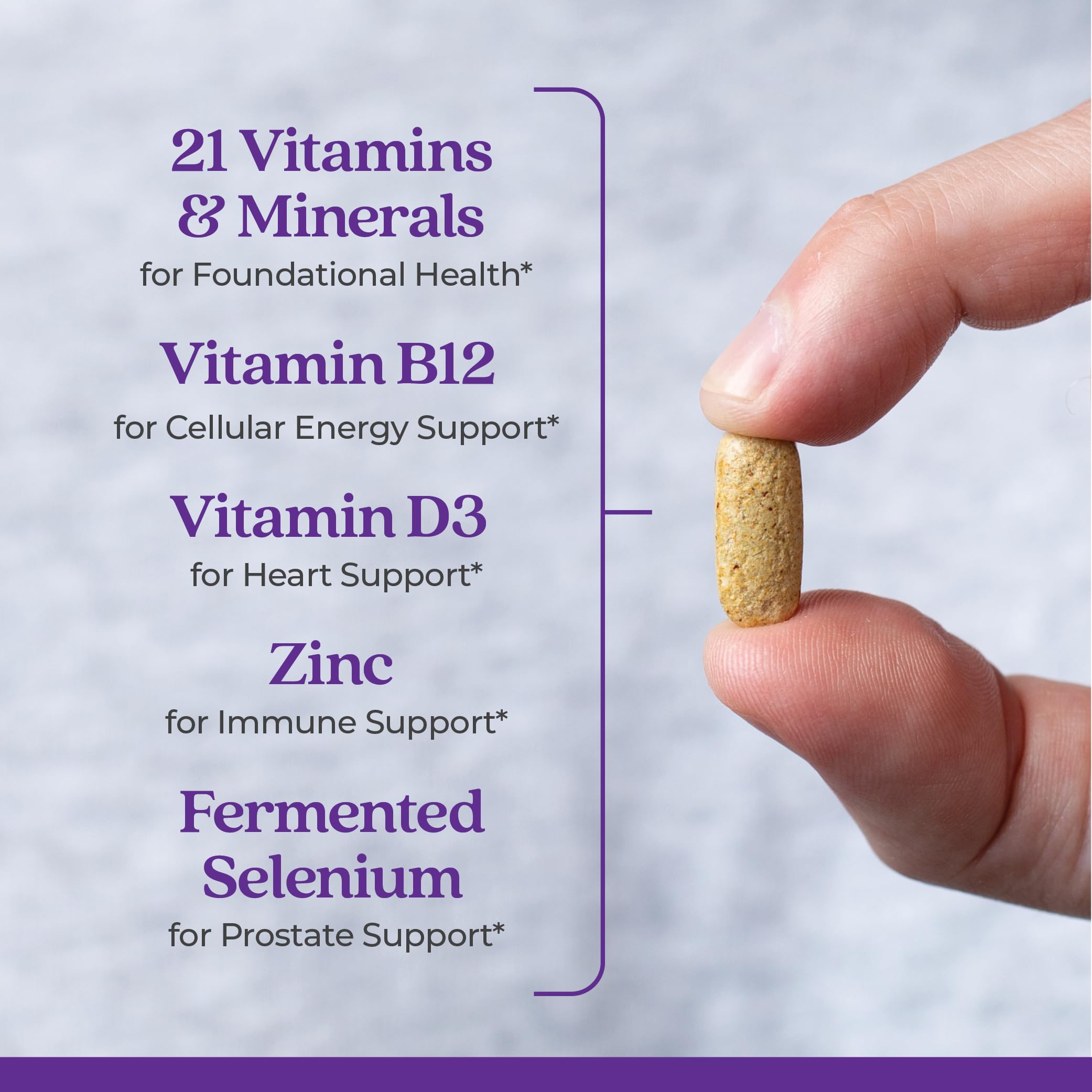 • ENERGY & IMMUNE SUPPORT: Designed to support men’s holistic health needs, including nutrients for energy, immune, heart, brain, bone, stress, digestive & prostate health support + healthy hair, skin, and nails*