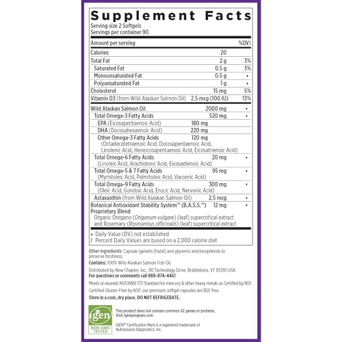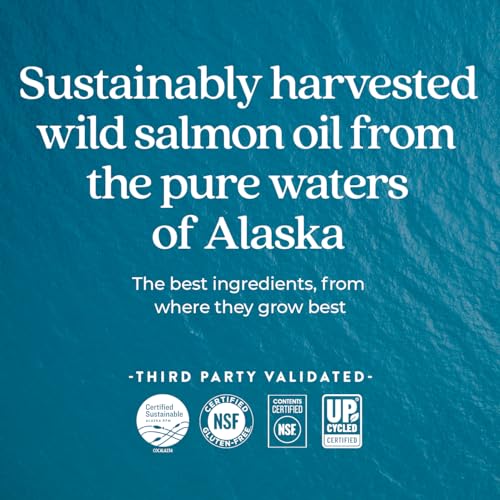- 100% Wild Salmon Oil from Certified Responsible Alaska Fisheries, Contents NSF Certified, Certified Gluten-Free by NSF, Non-GMO Tested, No High-Heat Processing, No Artificial Flavors, No Sugar or Sweeteners (added to some Omega-3 fish oil gummies), No Farmed Fish, No Krill Oil, No Cod Liver Oil, BSE-free softgels. (Packaging May Vary)