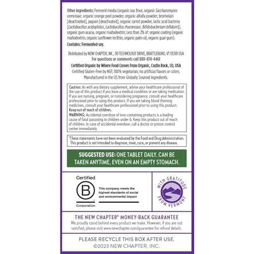 - THE FERMENTED ADVANTAGE: New Chapter ferments key vitamins and minerals with probiotics and formulates our blends for optimal absorption