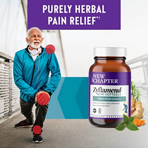 Is your joint care supplement relieving pain? Easy-to-swallow Zyflamend Mini Softgels work on pain right where it starts?keeping in check the inflammation response that impacts joint comfort and mobility.*+ Tiny in size with BIG benefits, Zyflamend Mini Softgels are an excellent herbal complement to glucosamine, which is a cartilage supplement that does not address inflammation relief. New Chapter?s #1-selling herbal blend gives you 3-in-1 joint health benefits: supporting mobility, flexibility, and overall joint support and comfort.* Expertly formulated with 10 superfood herbs including potent Ginger, Turmeric, and Green Tea.*+ *These statements have not been evaluated by the Food and Drug Administration. This product is not intended to diagnose, treat, cure, or prevent any disease. +With Ginger for occasional pain relief and healthy inflammation support after exercise. ++ As shown in preclinical lab testing