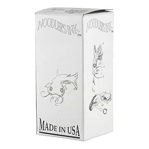 This ink is all U.S. made and boasts Archival, Anti-Forgery and Anti- Feathering features — what the manufacturer calls Bulletproof. 3 oz. bottle of Noodlers ink in EEL BLACK. Eel inks are designed with a lubricating quality that improves the flow for some temperamental vintage or new pens. The product is new, current product directly from the manufacturer. The bottle is glass with a distinctive Noodlers label, and an outside Noodlers box. This ink is all U.S. made. The ink is specifically designed for fountain pen use. Noodlers is very proud of the qualities their inks provide. Some of these qualities relate to how Noodlers inks interact with the mechanics of your pen. These inks are designed for use with any new or vintage fountain pen.