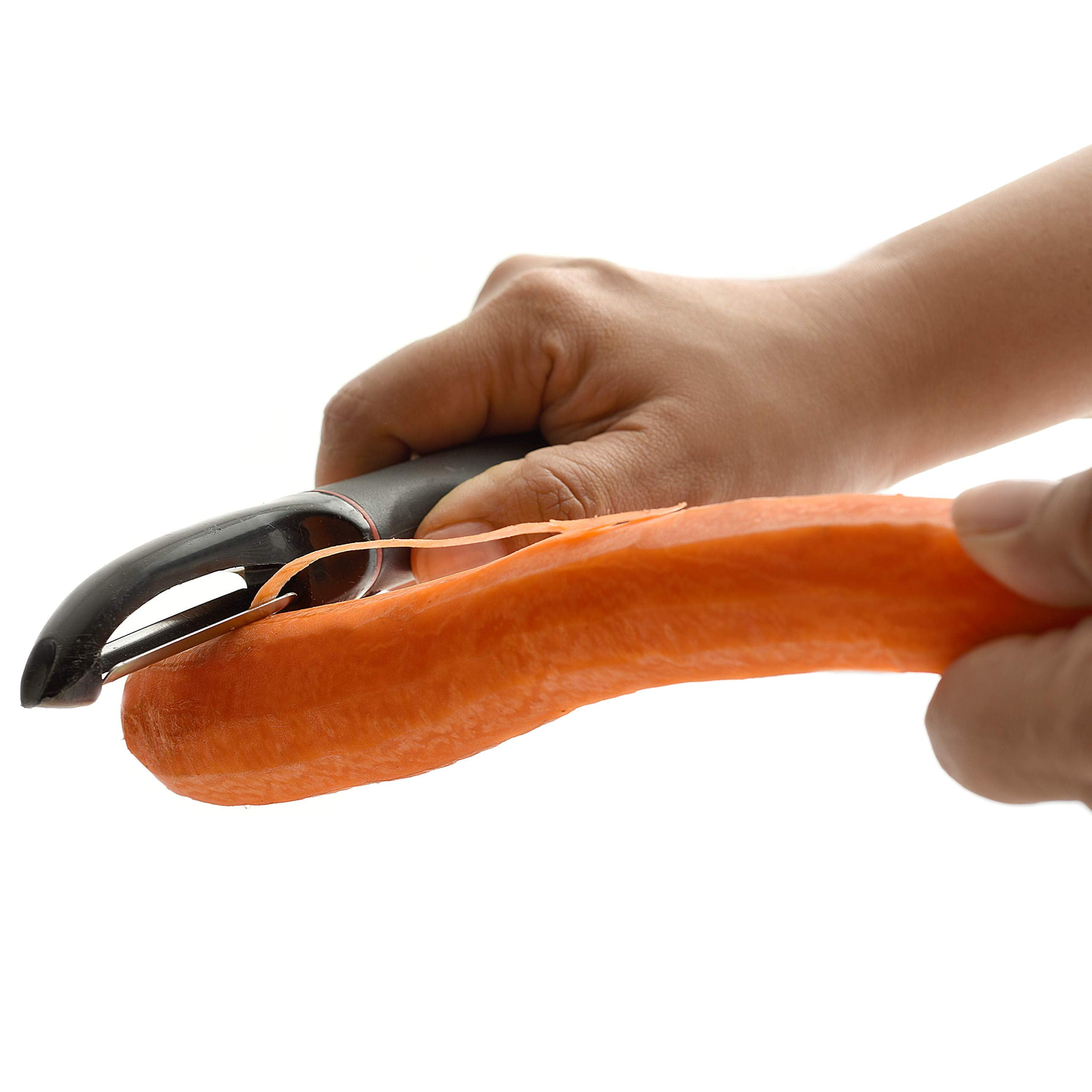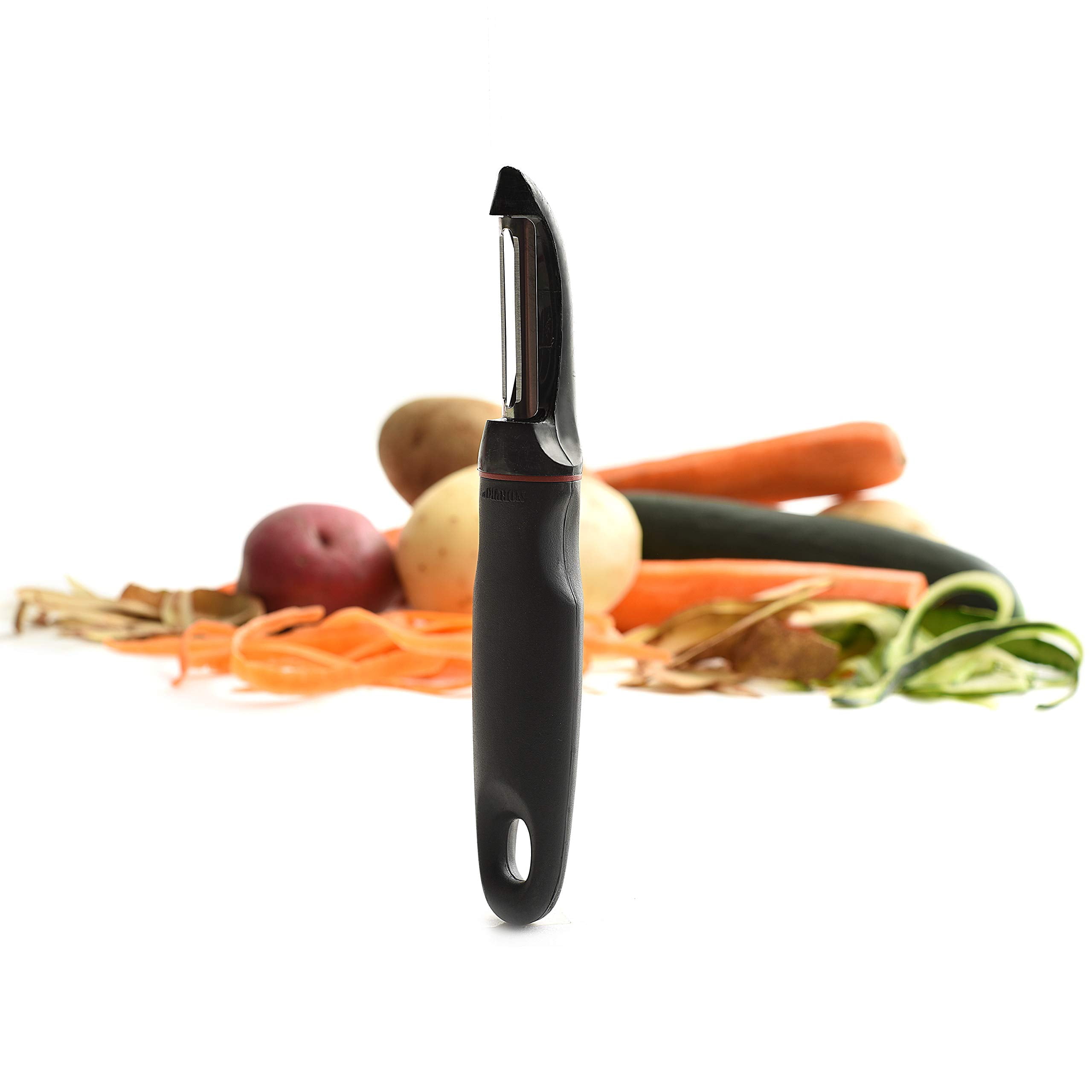 Ideal for peeling vegetables with it’s Grip-EZ handle that allows for a stronger grip to prevent hand fatigue and cramping. This product features stainless steel blades that stay sharp and a potato eye remover.