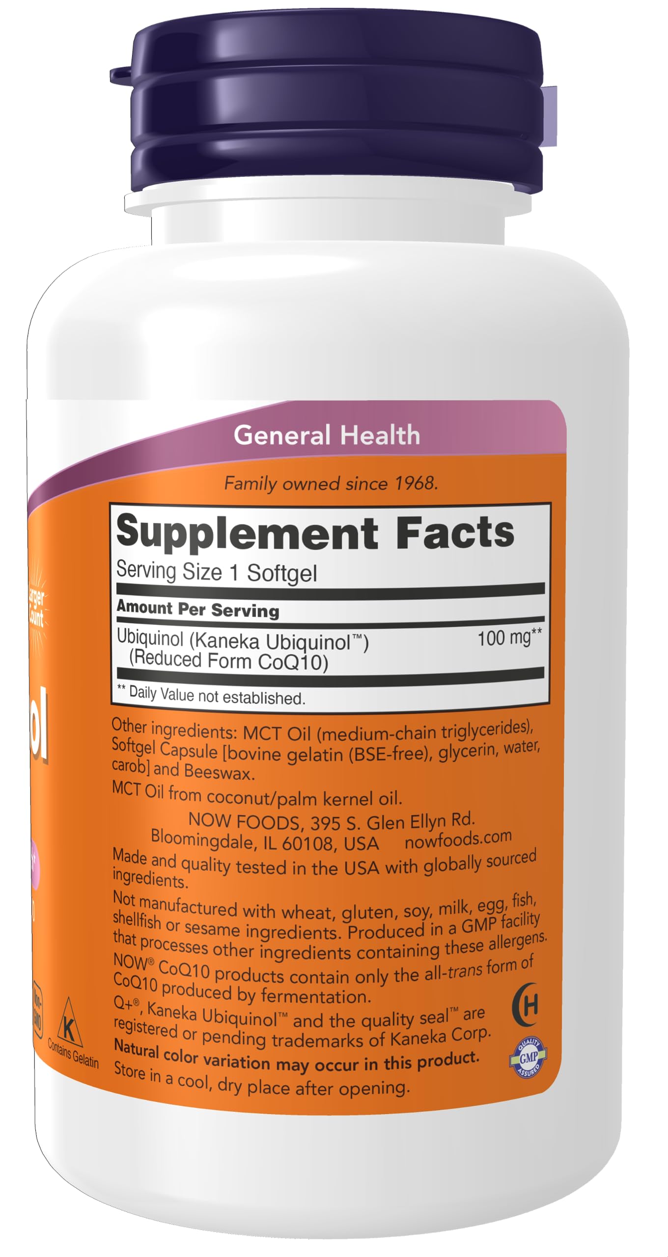 Original price was: ₹2,398.₹1,547Current price is: ₹1,547.NOW Supplements, Ubiquinol 100 mg, High Bioavailability (the Active Form of CoQ10), 120 Softgels