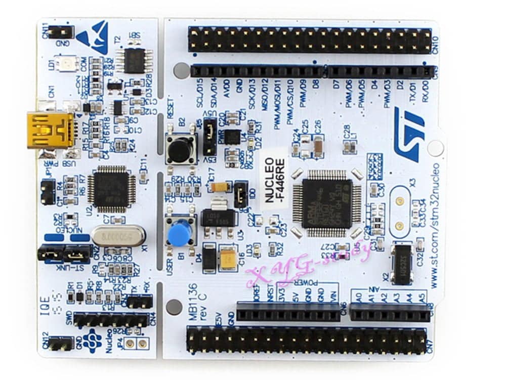 - NUCLEO-F446RE, STM32 Nucleo development board with STM32F446RET6 MCU, supports Arduino