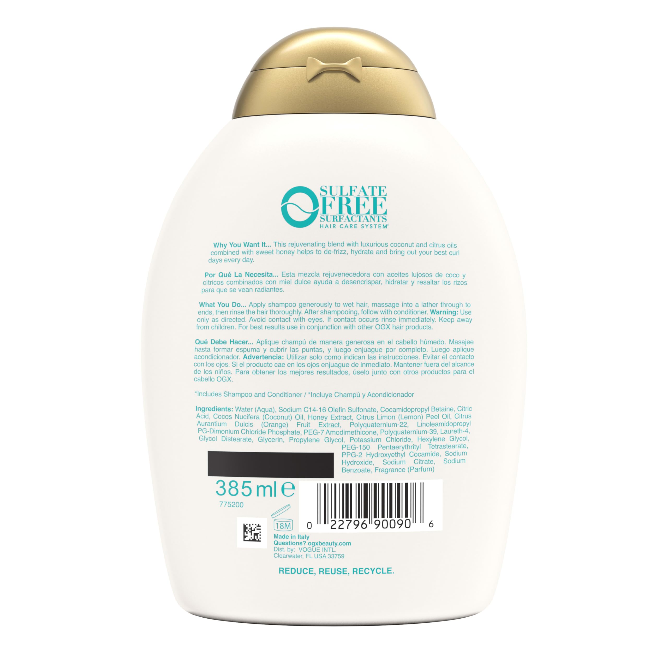 OGX Quenching + Coconut, Curl-Defining Shampoo, Hydrating & Nourishing Curly Hair Shampoo with Coconut Oil, Citrus Oil & Honey, Paraben, Sulfate-Free Surfactants, 13 floz