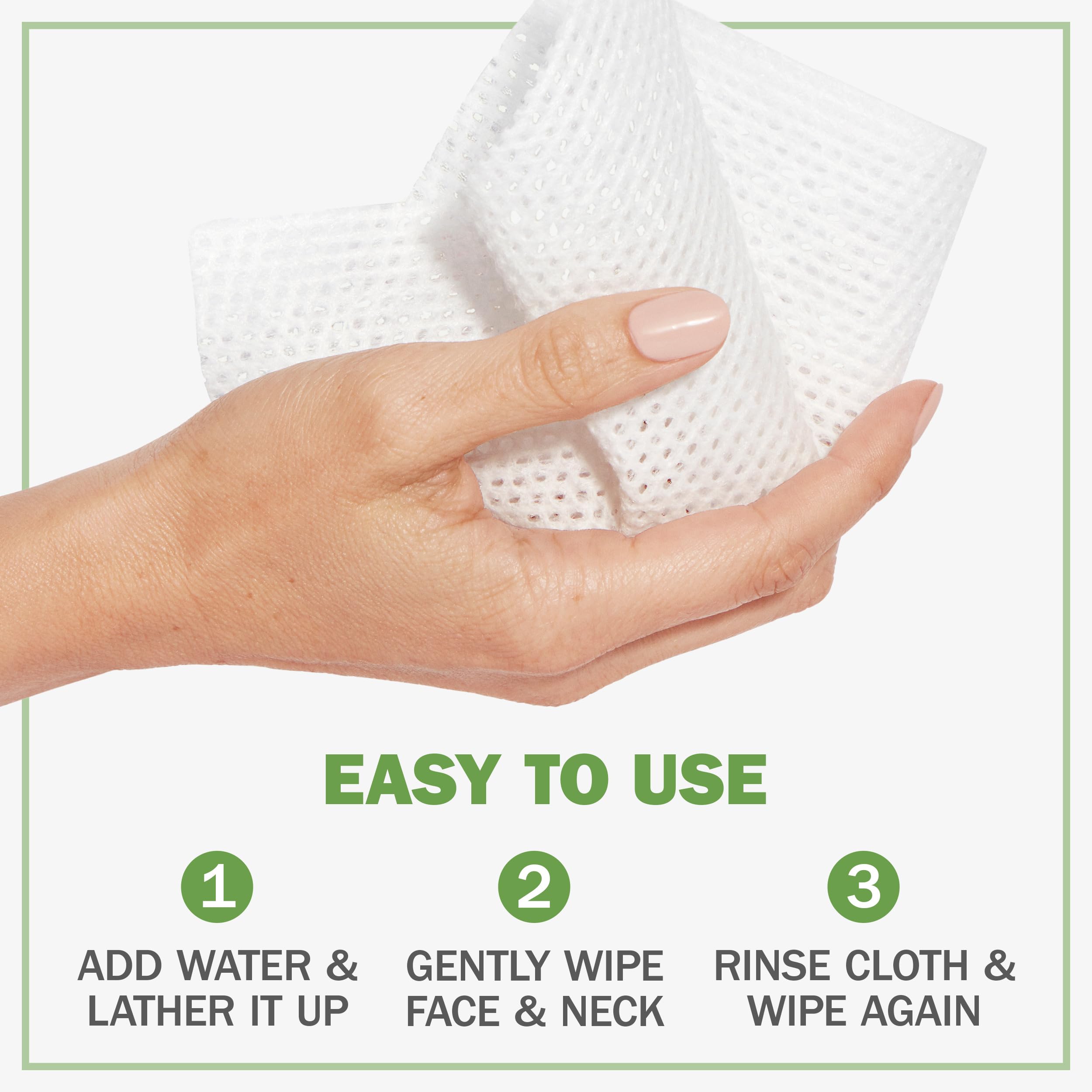 - ALL YOUR CLEANSING NEEDS IN ONE CLOTH: Don?t have the sink space (or the time) for a cleanser, a makeup remover, a toner, a scrub, and a mask? Don?t sweat it, a single cleansing cloth has all five benefits