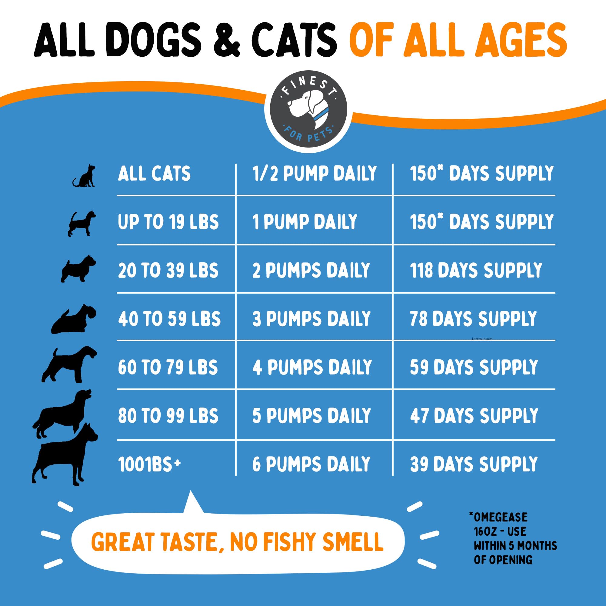 Omegease tastes great to cats and dogs and is free of strong fishy odors