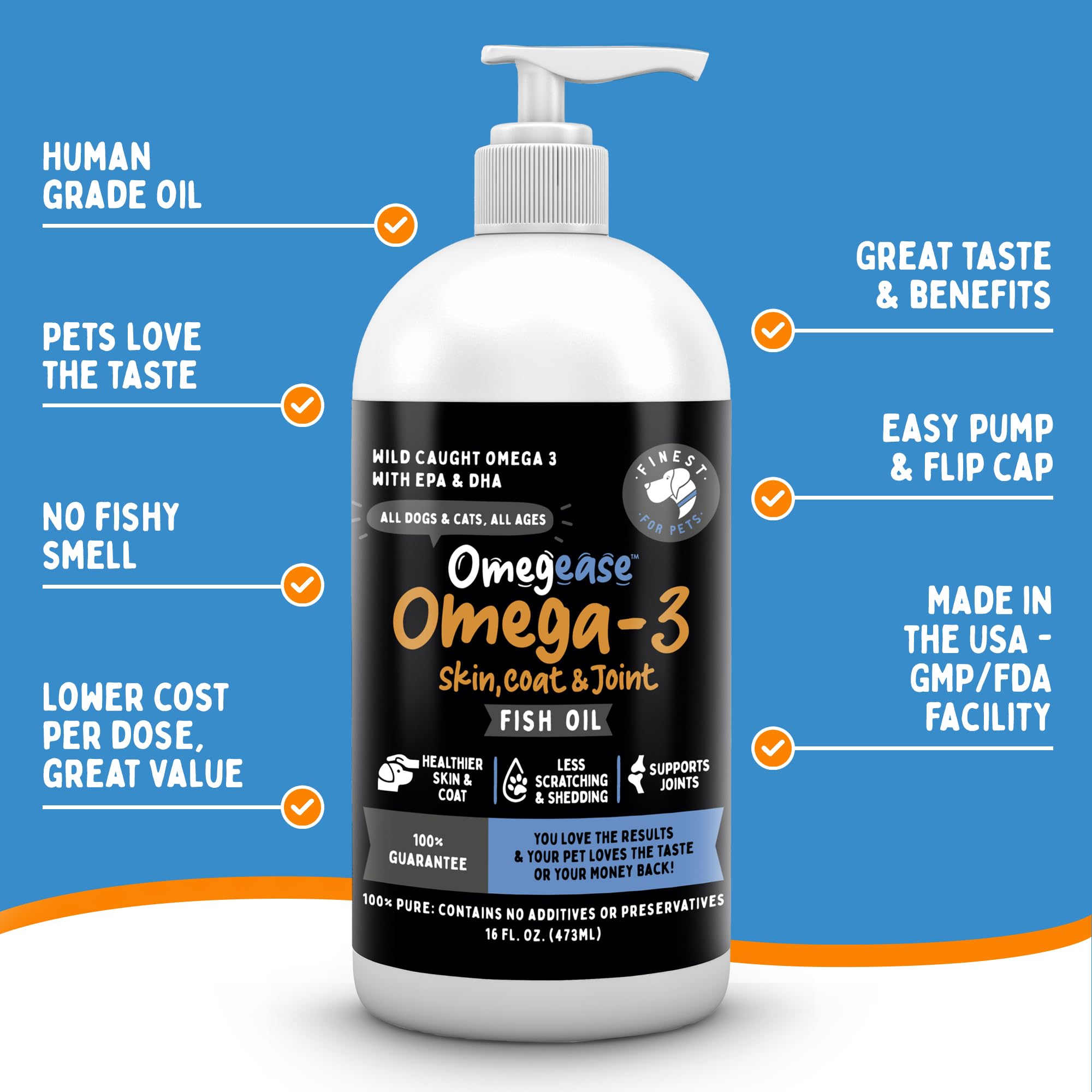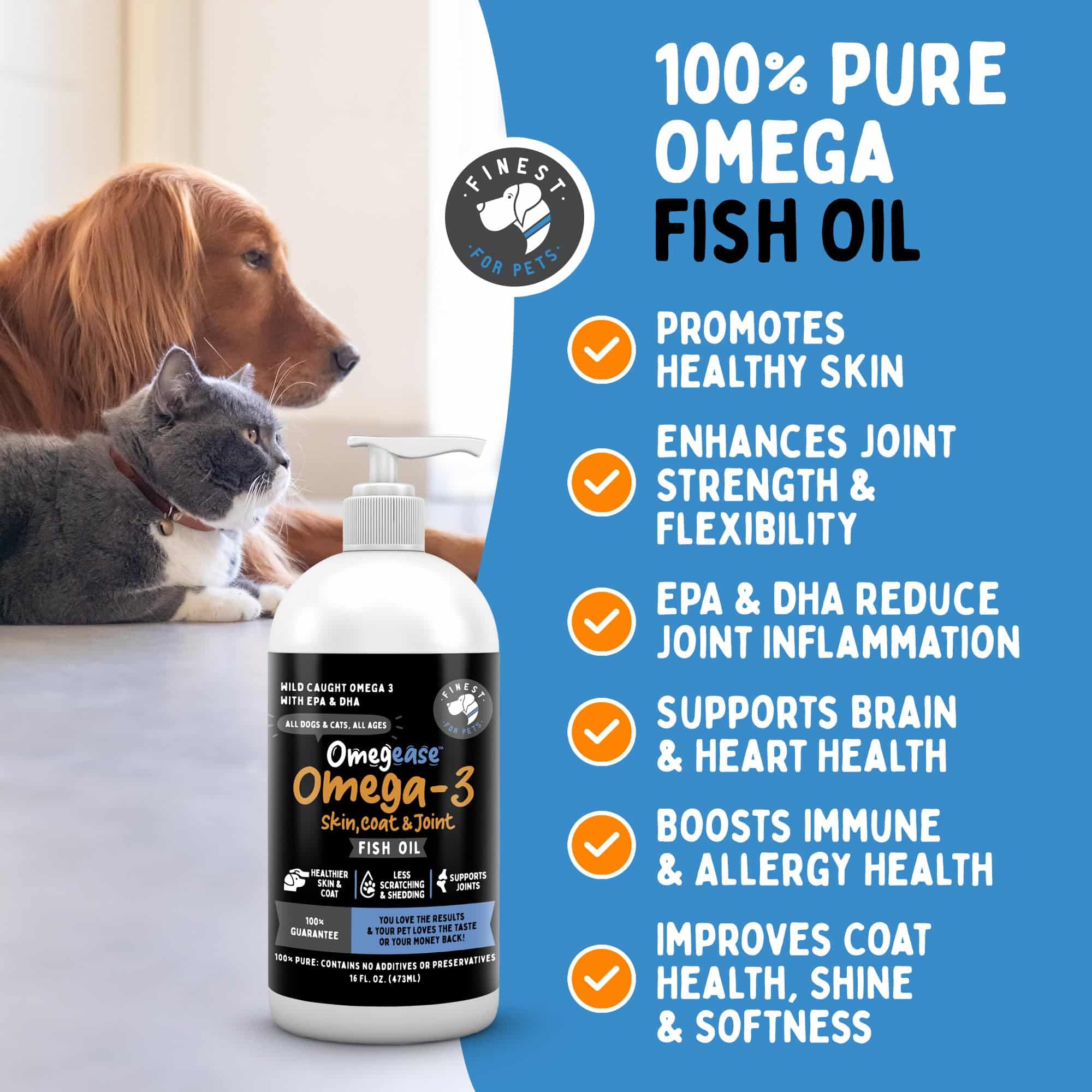 - OPTIMAL HEALTH SUPPORT: Omegease Omega 3 Fish Oil for Dogs and Cats provides essential EPA and DHA fatty acids that support healthier skin, coat, and joints. It also boosts their immune system and brain.