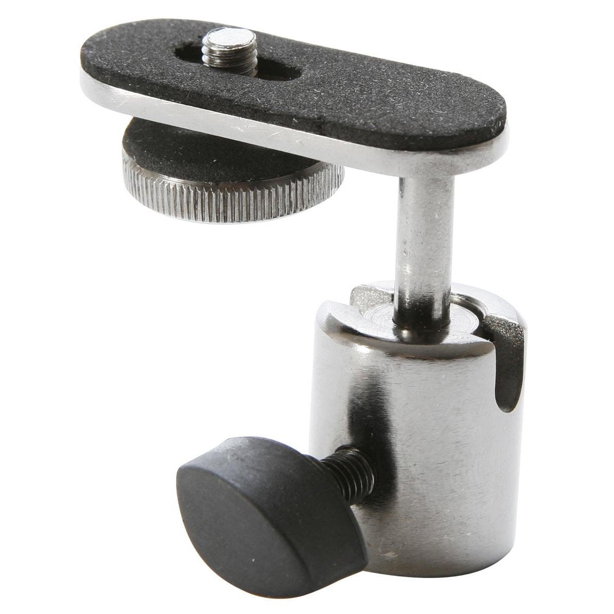 Now every band with a video camera and mic stand can create professional videos of their live performances! Attach this innovative adapter to any 5/8″ 27-threaded mic stand/boom to support a video camera or digital recorder with standard 1/4″ threaded female inserts. Can also be used for conference/presentation recording, school play/concert recording, or even with a classroom projector. The adapter’s ball-head allows for independent pan and tilt with 360 degree pan movement and 180 degree tilt.