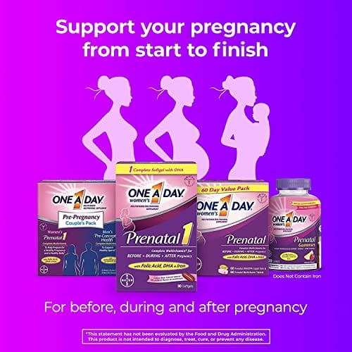 When you’re pregnant, you want to do your best to give your baby a great start. One thing you can do is take One A Day Women’s Prenatal 1, a complete multivitamin that provides nutritional support and is specially designed for women before, during and after pregnancy, with Omega-3 DHA and key nutrients like Folic Acid, Iron and Calcium, all in a single, soft gel. From a doctor recommended brand. This statement has not been evaluated by the Food and Drug Administration. This product is not intended to diagnose, treat, cure, or prevent any disease.