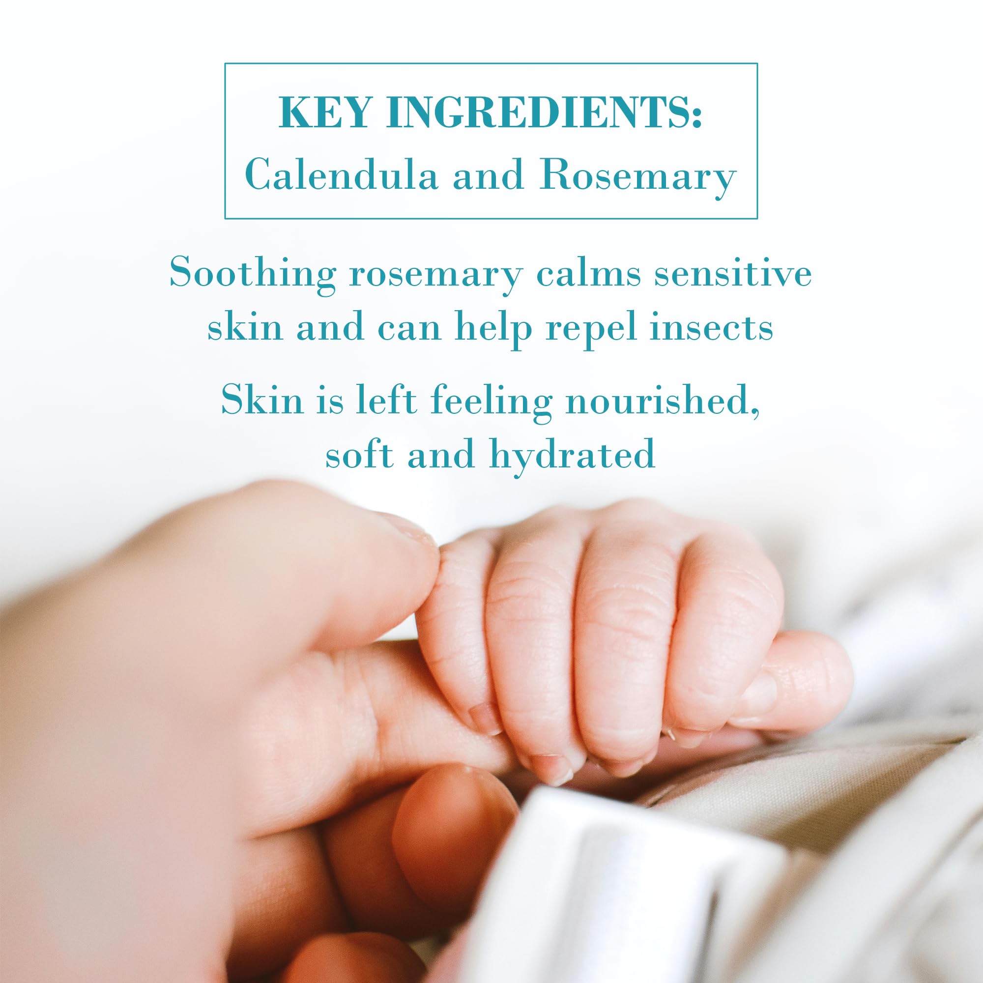 It gently hydrates your skin while calming irritation and features natural ingredients that are safe for infants and children. It also helps to protect your skin from environmental damage.