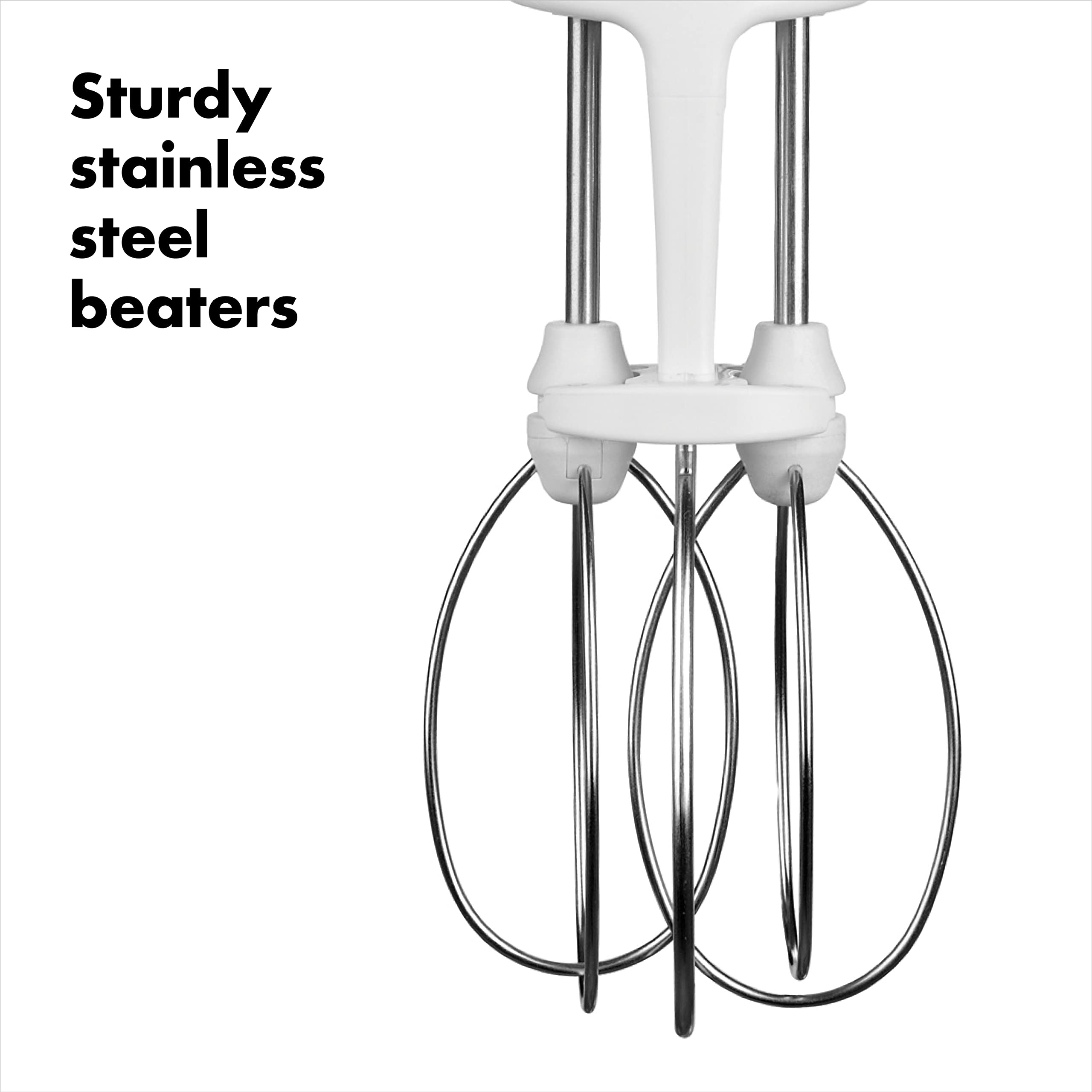 - Beaters are elevated and continue to work while resting on bottom of bowl