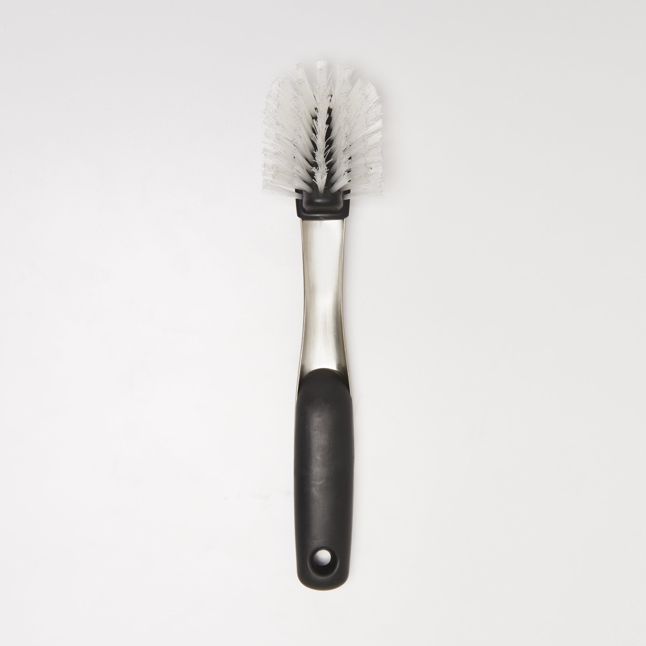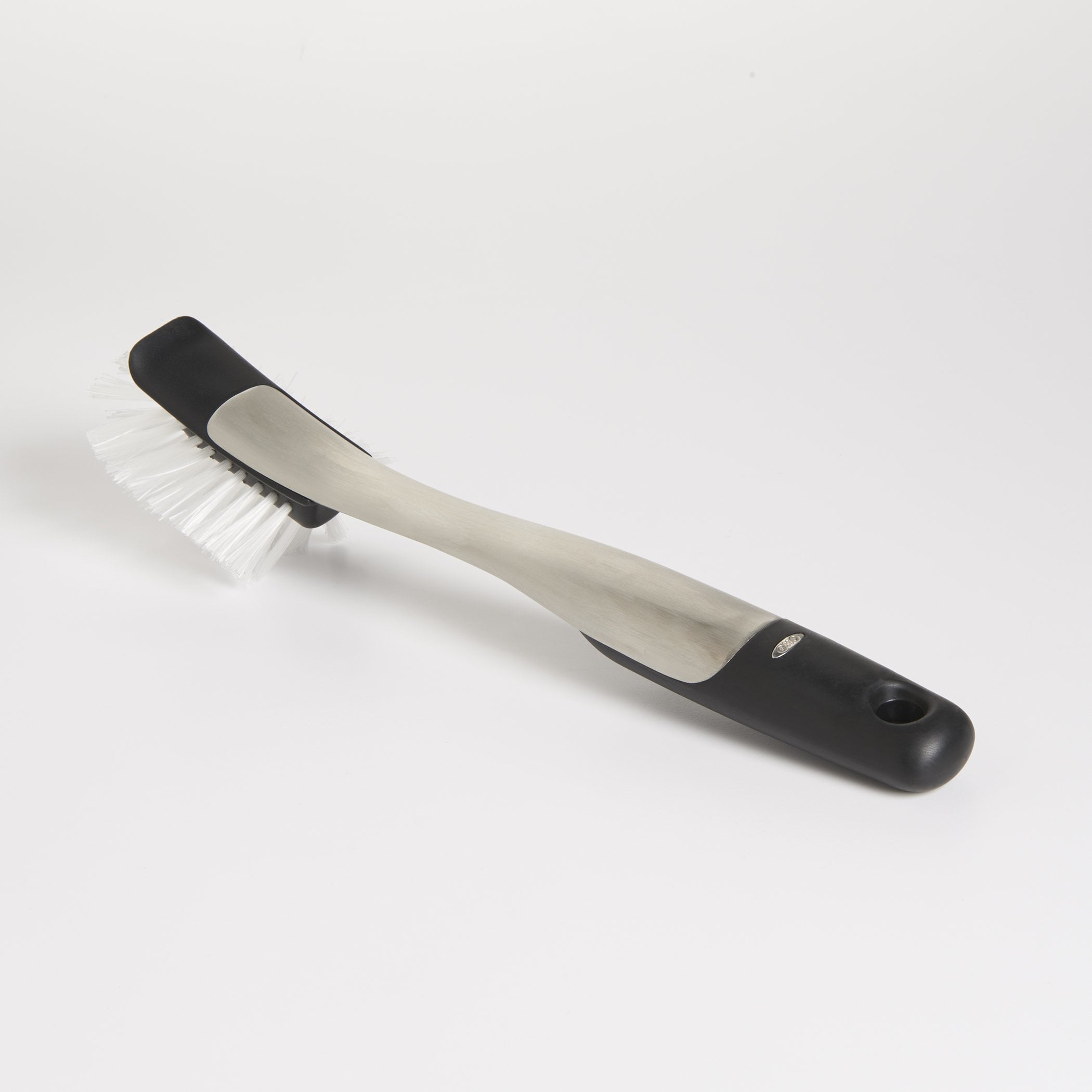 Make scrubbing pots and dishes easier with the OXO SteeL Dish Brush. The durable, nylon bristles and built-in scraper are safe for non-stick cookware and help remove baked-on food. Brushed stainless steel body adds a touch of elegance and a soft, non-slip handle provides a secure grip, even when wet. Dishwasher safe.