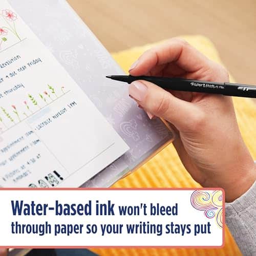 - Water-based ink won’t bleed through paper so your writing stays put