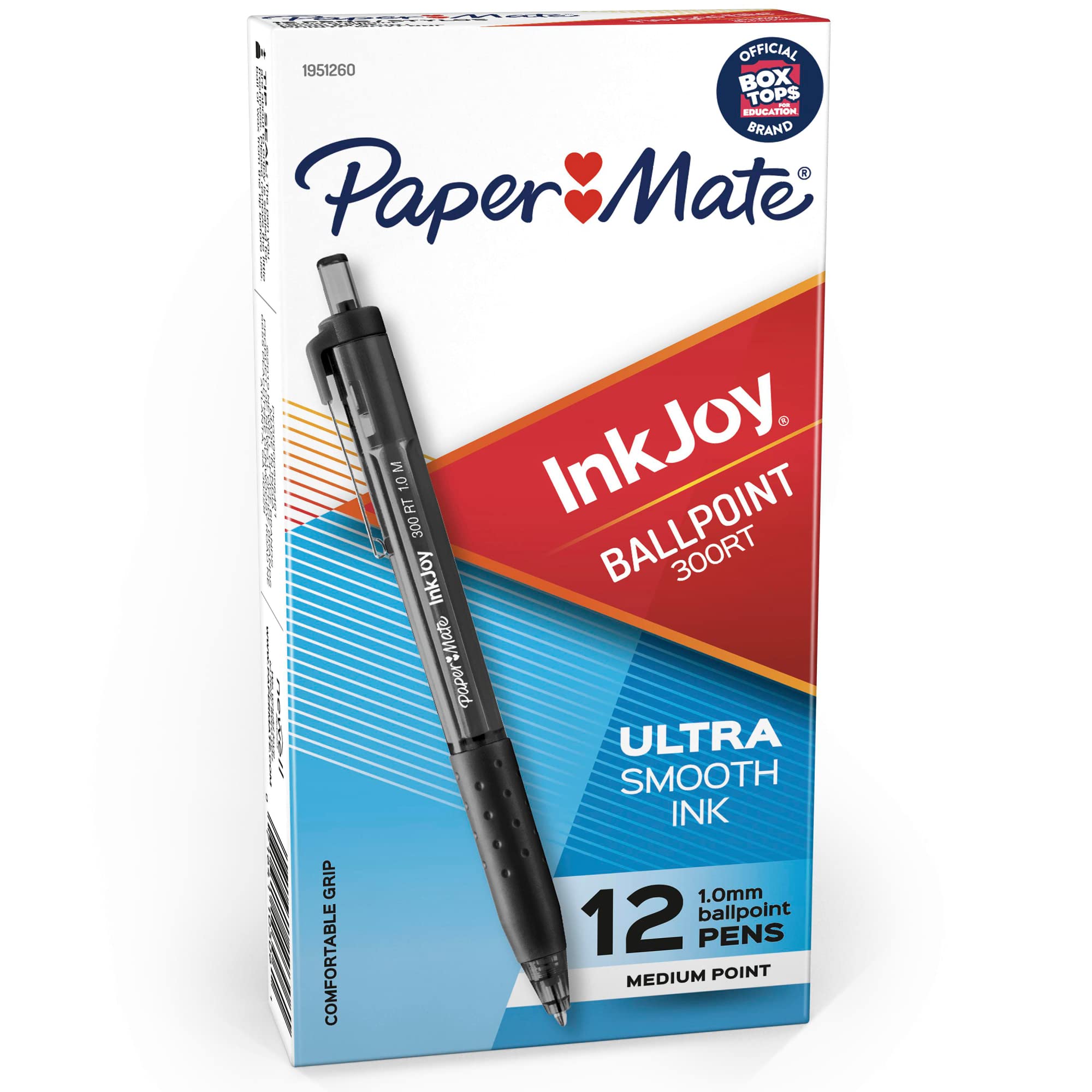 Click, smile and go! Paper Mate InkJoy 300RT retractable ballpoint pens let your words and ideas flow in bold black color. The ultra-smooth writing system never drags, plus each ballpoint pen has a comfortable rubberized grip that feels great in your hand. Liven things up and spread joy with Paper Mate InkJoy!From the ManufacturerRetractable ballpoint pens feature Paper Mate”s revolutionary InkJoy writing system, giving you the best in effortless writing. The InkJoy writing system starts quickly without dragging, requires minimal pressure from your hand, and delivers crisp, clean lines every time. Extended rubberized grip provides optimal comfort. Metal clip provides long-lasting durability and can be used to attach pen to pockets, notebooks and more. Transparent color-tinted body of the InkJoy 300 RT offers a refreshing look.