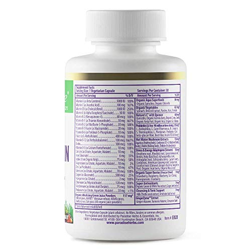 Original price was: ₹2,418.₹1,560Current price is: ₹1,560.Paradise Herbs, Earth’s Blend, Multivitamin, with Iron, 48 Organic Superfoods, Probiotics, Antioxidants, Vitamins A, B12, C, D, K2, Daily Superfood Multivitamin with Iron, 30