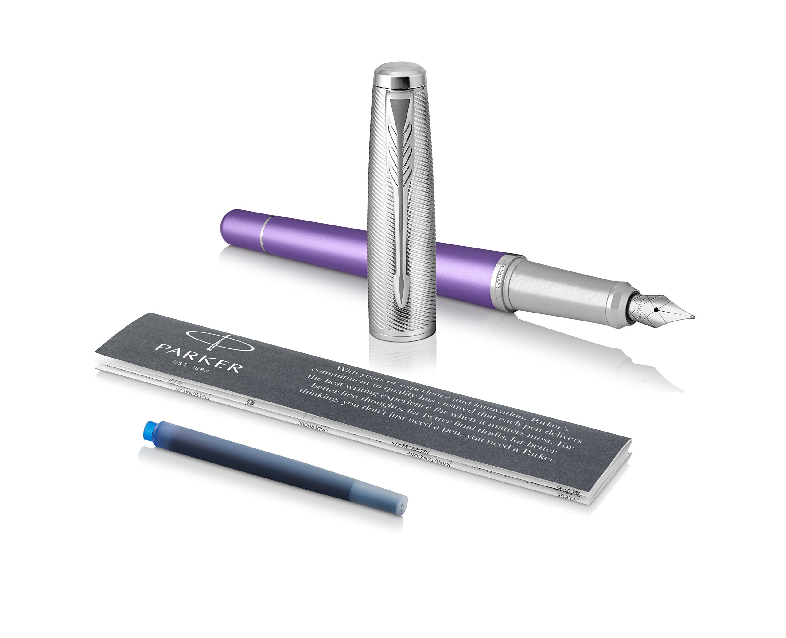 - Sophisticated gifting for all occasions, the fountain pen is presented in a PARKER gift box with a long blue QUINK ink cartridge