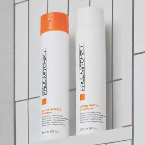 Preserve and protect hair color with Color Protect Conditioner from Paul Mitchell. This daily conditioner detangles and soothes color-treated hair, so strands look and feel soft and hydrated. Sunflower extract helps to protect hair from sun damage to keep color from fading, while conditioning extracts moisturize hair and boost shine. Hair Type: Ideal for Color-Treated Hair. Fragrance: Refreshingly energetic scent with notes of orange, apple and bergamot. Color Safe. Vegan. Paraben Free. UV Protection.