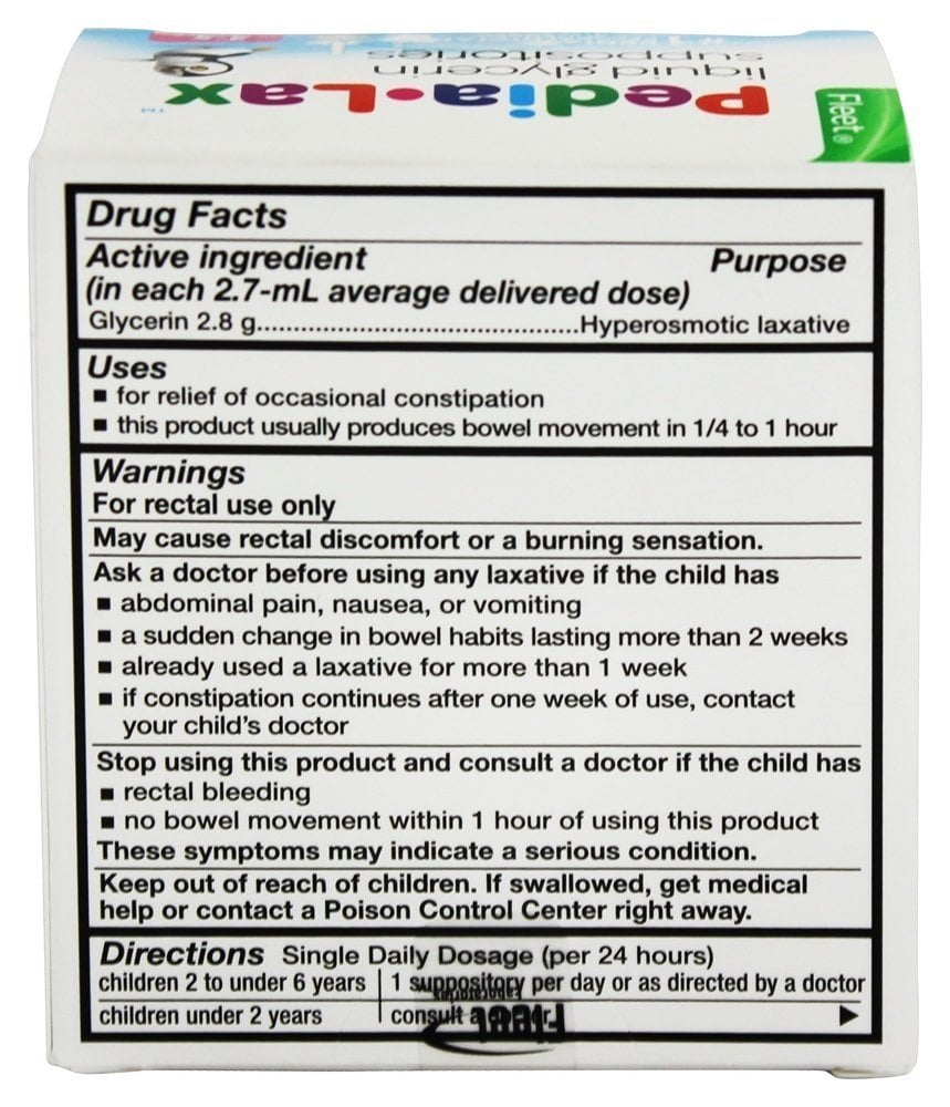 Pedia-Lax Liquid Glycerin Suppositories are made for kids who suffer from occasional constipation. Glycerin is recommended by doctors. It may help to soften the stool on contact without upsetting kid’s digestive system. This formula is convenient to use and doesn’t involve any messy applications. It increases the bowel movement in the body and provides relief to kids.