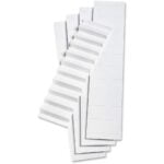 For use with tabs 42 and 43, 10 inserts per strip. Spaced to fit up to 3 lines of Type. Perforated for fast removal. Width 2″. pack of 100.
