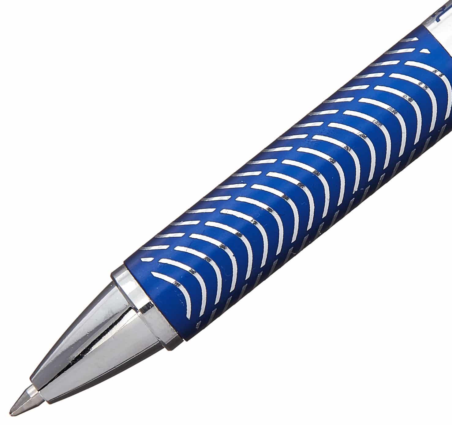 EnerGel Alloy Retractable Gel Pen offers a deluxe premium metal barrel and an ideal blend of liquid and gel for the best of both inks. The stainless steel tip delivers the ultimate writing experience as rich liquid, gel ink glides across paper. Vivid, acid-free, super-smooth ink dries quickly without smearing or blotting and is great for left-handed writers. Sleek, balanced alloy barrel is ideal for maximum writing performance. The distinctive, textured grip area provides extended comfort while you write. Gel pen is retractable to protect pockets and purses and refillable with Pentel LR7 metal-tip refill or any size/color EnerGel refill.