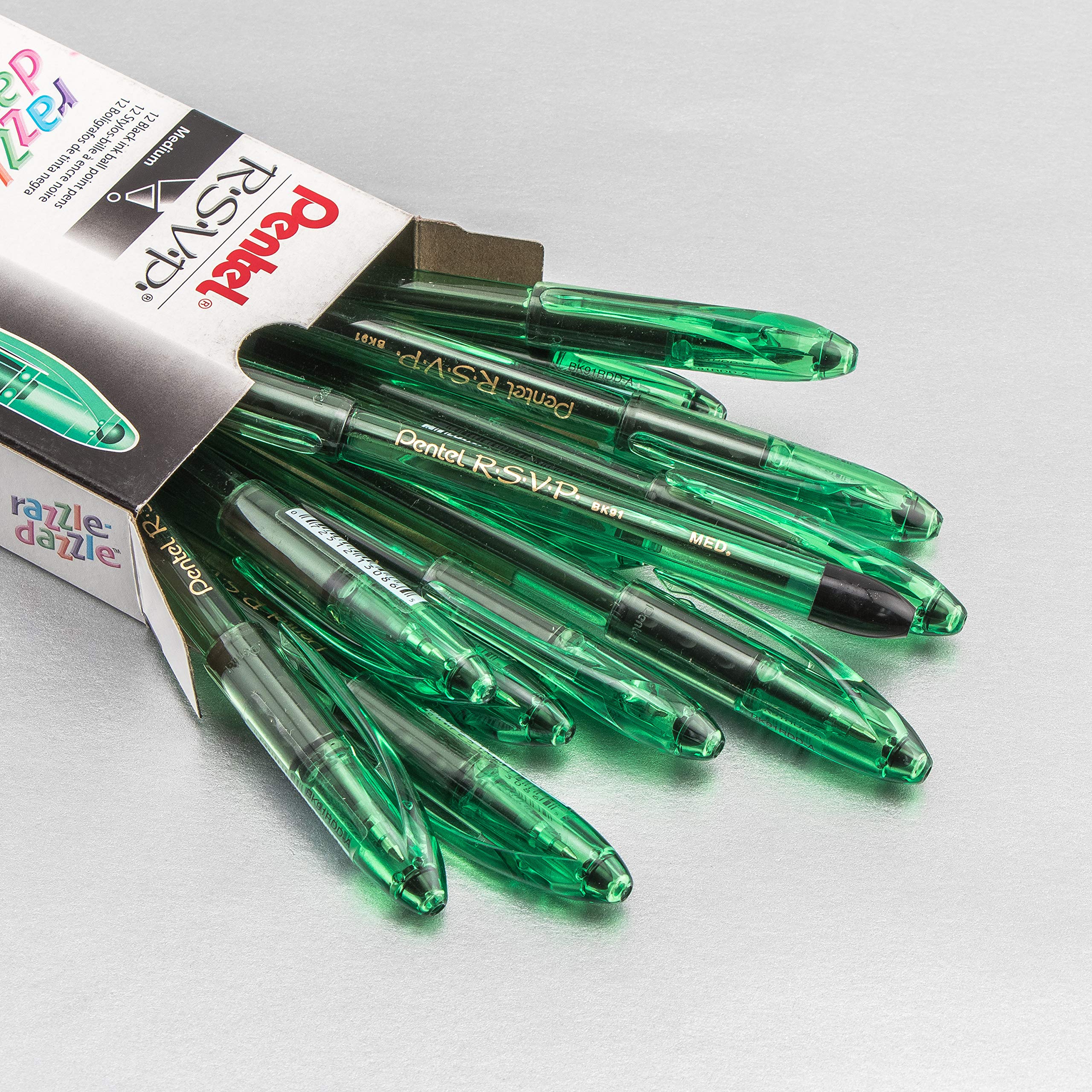 Original price was: ₹6,825.₹4,352Current price is: ₹4,352.Pentel R.S.V.P. Razzle-Dazzle Ballpoint Pen, Medium Line, Green Barrel, Black Ink, Box of