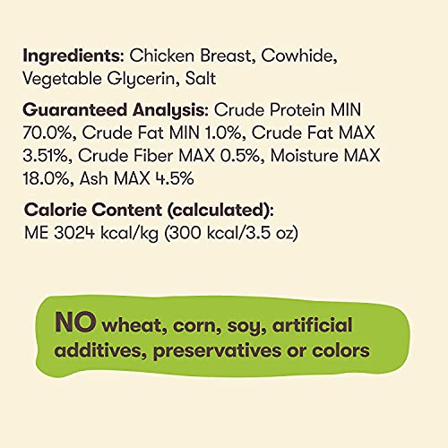 - INGREDIENTS ? Natural chicken breast filets and cowhide make for a mighty crunchy and chewy snack. All imported products have their ingredients U.S. lab-tested to ensure safety for your most special friend.