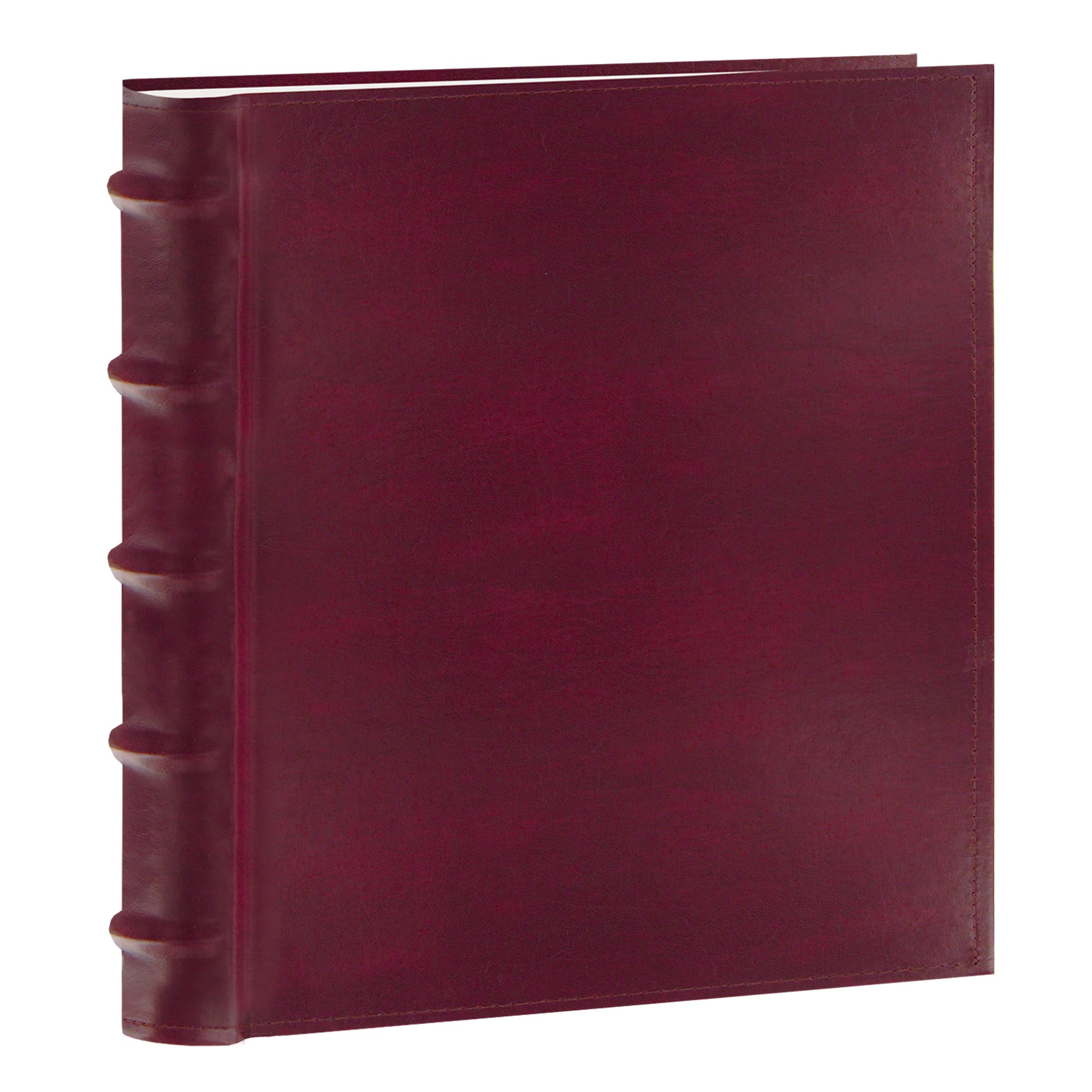 This sewn European bonded leather photo album features a deluxe raised rounded book style spine. It holds 200 photos up to 4″x6″ in optically clear pockets with a shaded background and a memo writing area. Photos are displayed two per page. Album measures 9.25″x9.25″x2″. Photo safe: Acid, lignin and PVC free.